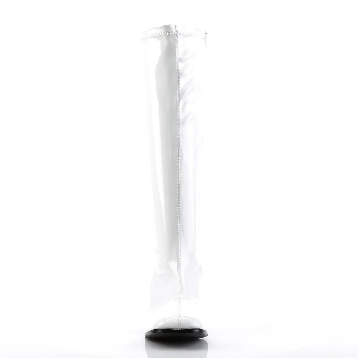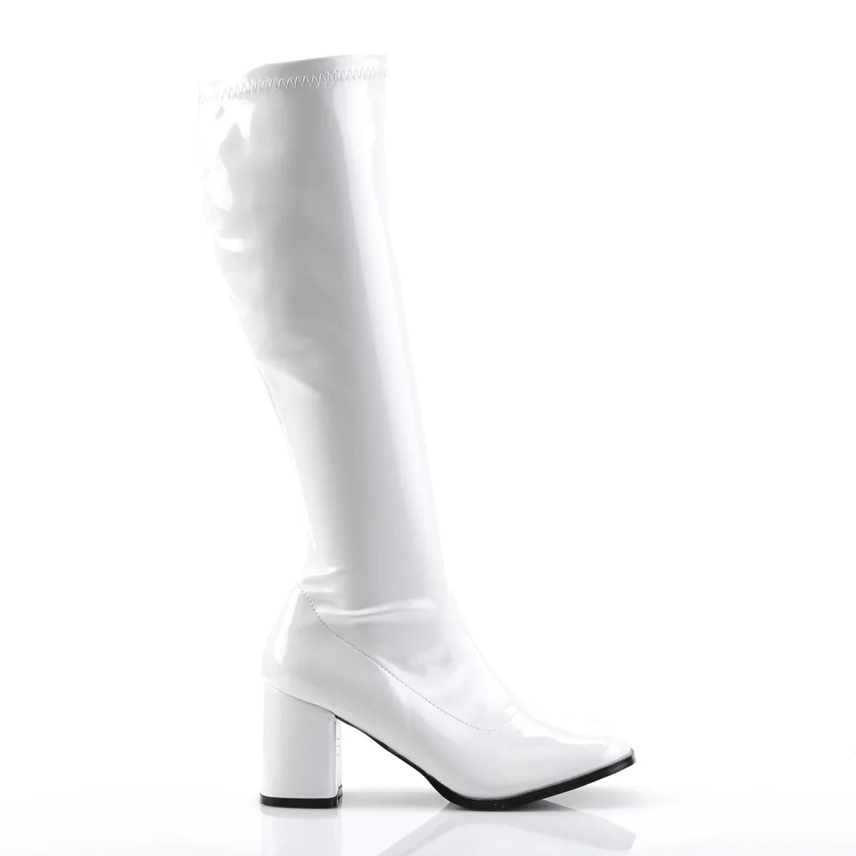 Un modelo temático muy visual para elevar tu look. Una bota ‘statement’ para looks temáticos y escenarios. Detalles clave: acabado en pat, suela de tpr, color blanco str charol, estilo vegano. Altura aprox. del tacón: 8 cm. El detalle que lo cambia todo.