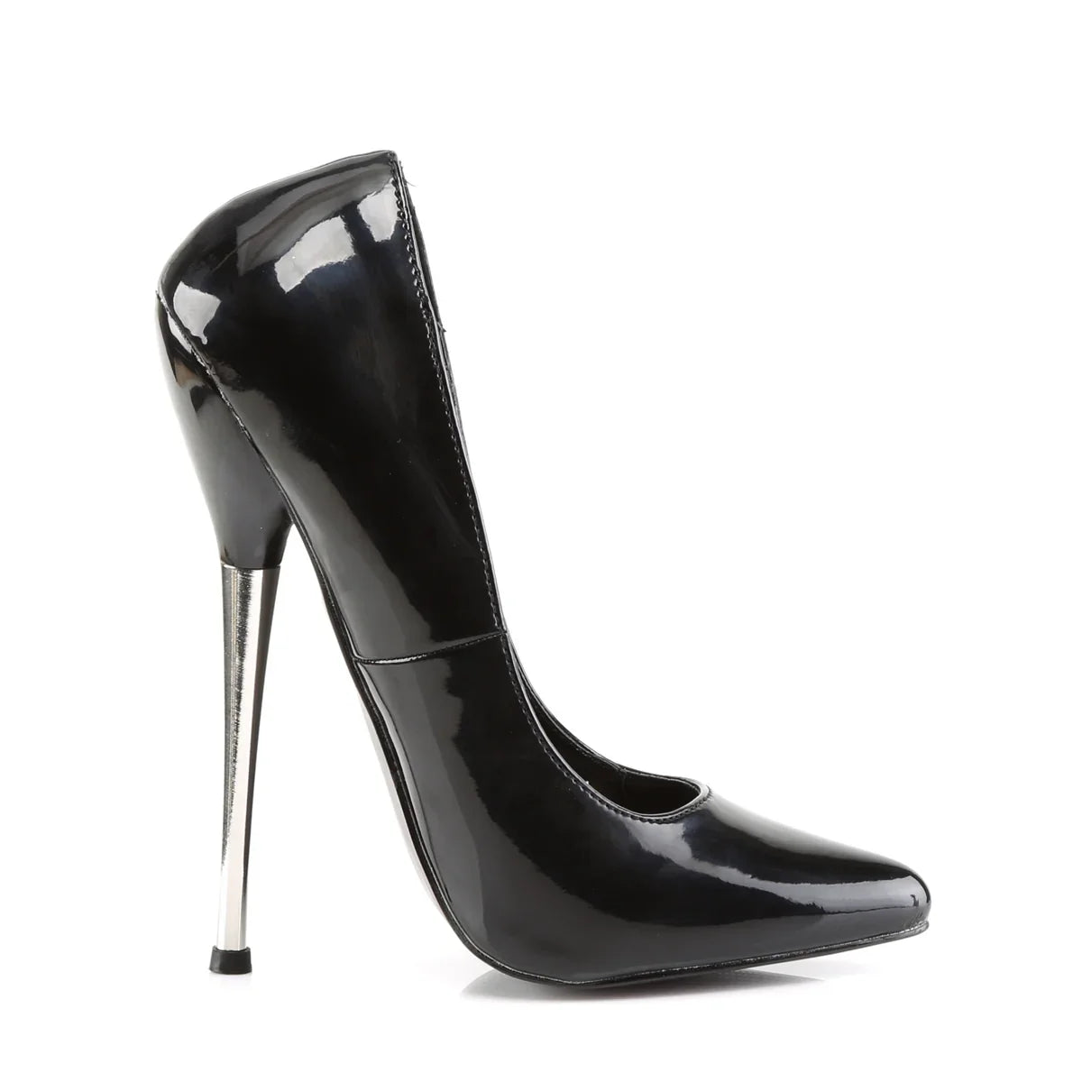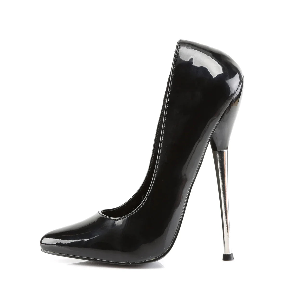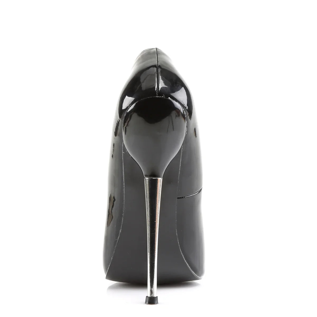 Un modelo muy visual para looks de impacto. Diseño cómodo y muy visual para evento, sesión y looks de diario con estilo. Detalles clave: acabado en pat, suela de goma, color negro charol, estilo vegano. Altura aprox. del tacón: 16 cm. Acabado top.