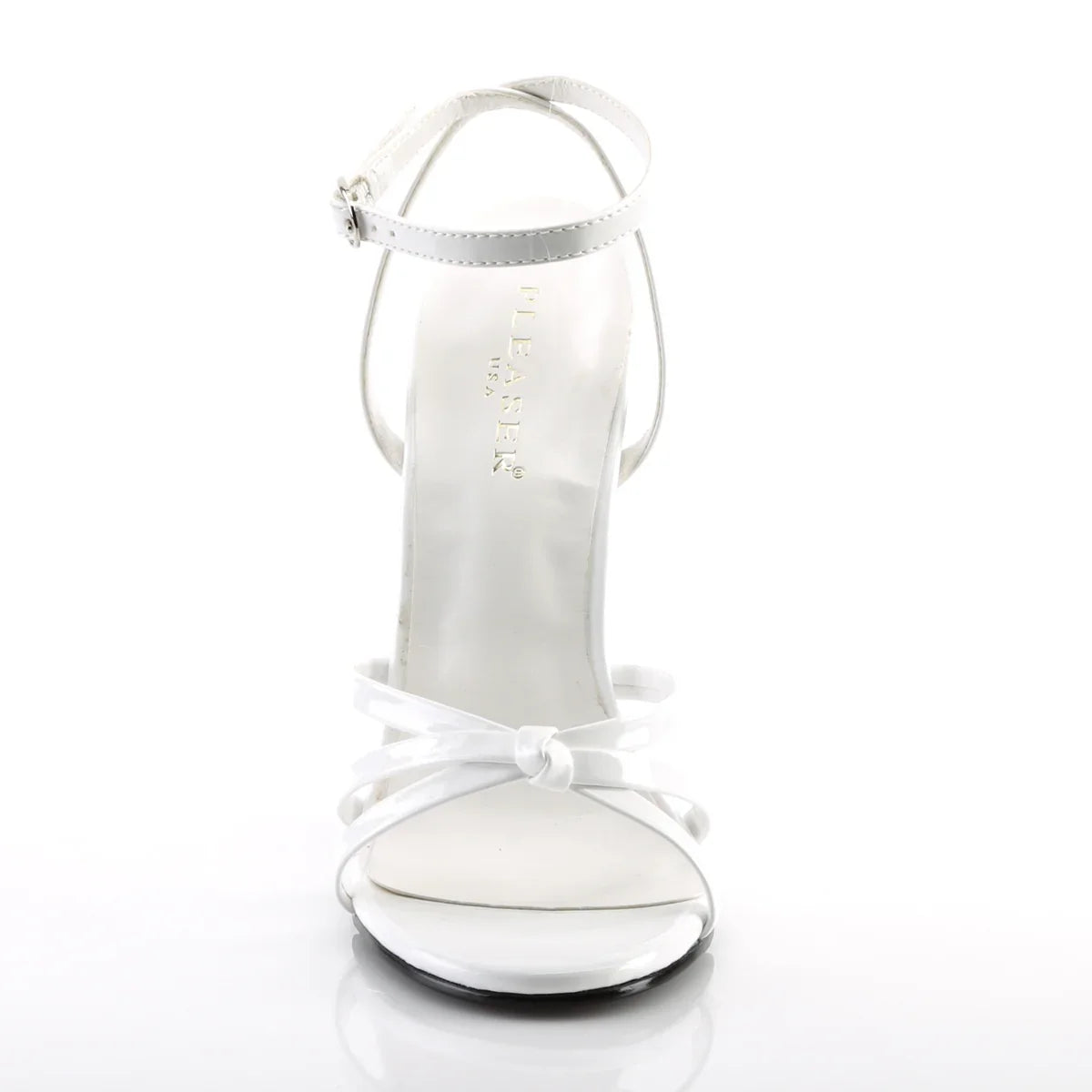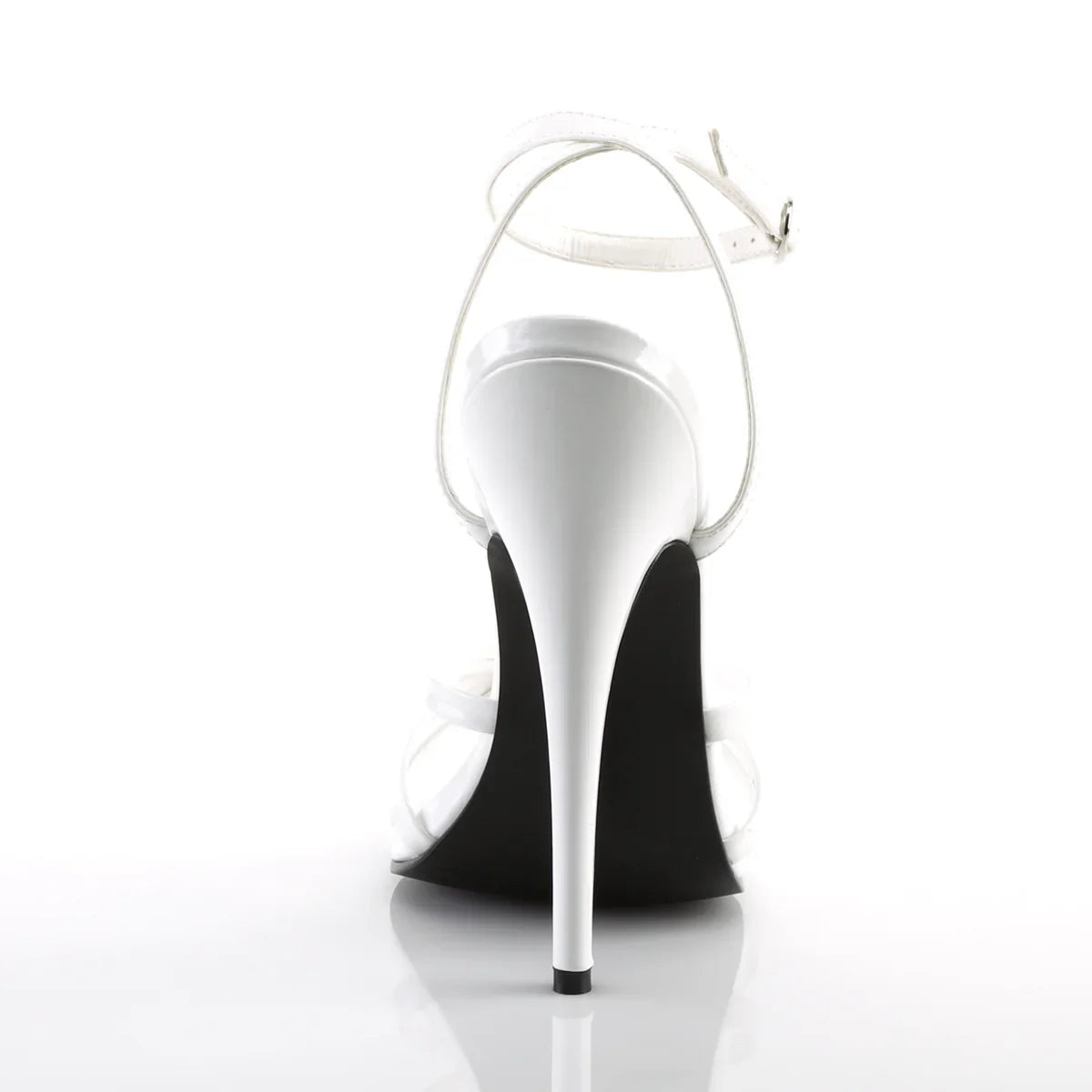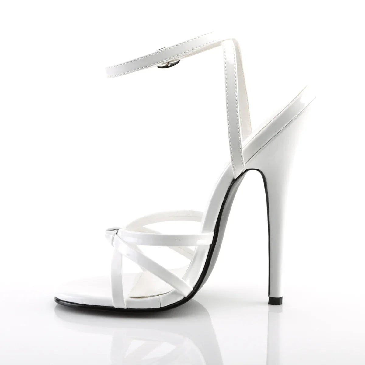 Diseño elegante con un toque atrevido. Diseño cómodo y muy visual para evento, sesión y looks de diario con estilo. Detalles clave: acabado en pat, suela de goma, color blanco charol, estilo vegano. Altura aprox. del tacón: 15 cm. Acabado top.