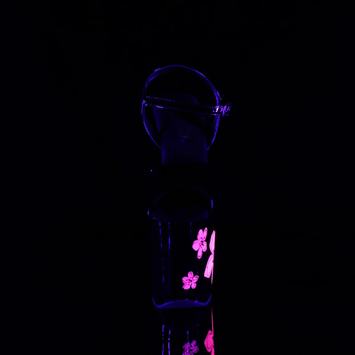Altura máxima con un look súper potente. Plataforma elevada para una estética espectacular y llamativa. Detalles clave: plataforma muy alta, acabado en pat, suela de goma, color negro charol / negro - neon rosa, estilo vegano. Altura aprox.: tacón 20 cm + plataforma 10 cm. Para un look atrevido y muy visual.