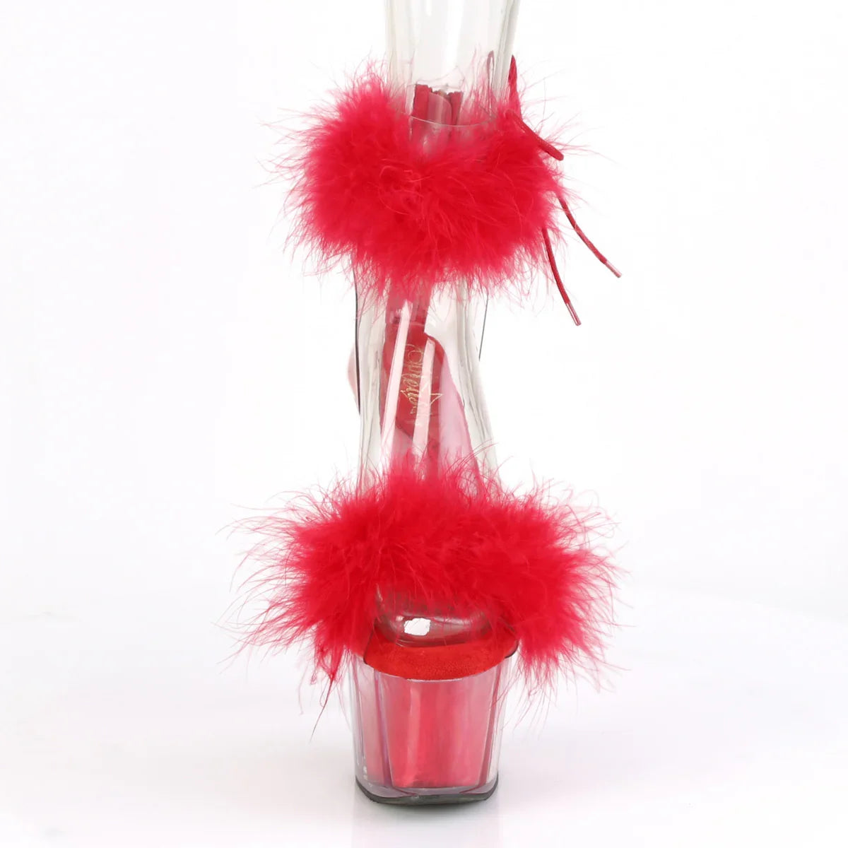 Ligera, elegante y con un look que no pasa desapercibido. La plataforma ayuda a repartir la inclinación del pie y mejora la estabilidad al caminar. Detalles que marcan la diferencia: acabado en pvc, suela de goma, color transparente - rojo fur / rojo fur. Altura total aprox. 18 cm con plataforma: impacto visual máximo, sin perder control.