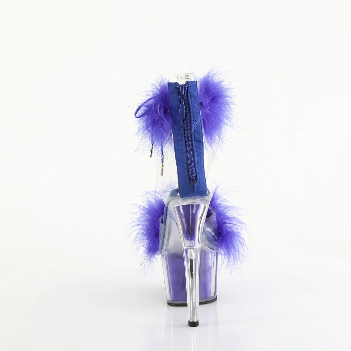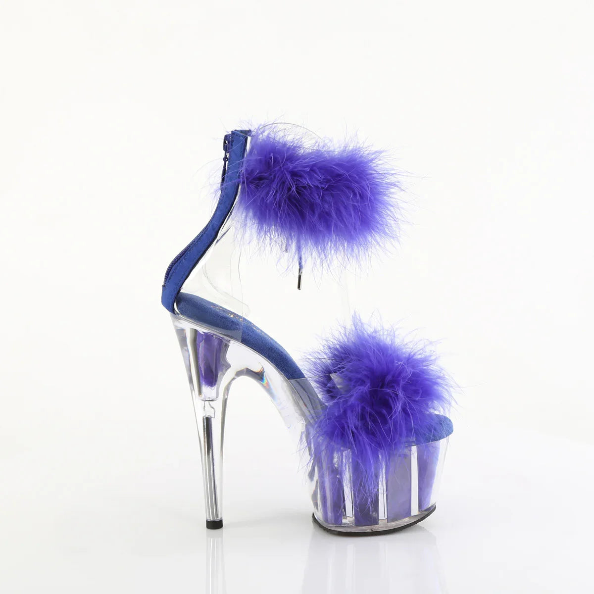 Ligera, elegante y con un look que no pasa desapercibido. La plataforma ayuda a repartir la inclinación del pie y mejora la estabilidad al caminar. Detalles que marcan la diferencia: acabado en pvc, suela de goma, color transparente - royal azul fur / m. Altura total aprox. 18 cm con plataforma: impacto visual máximo, sin perder control.