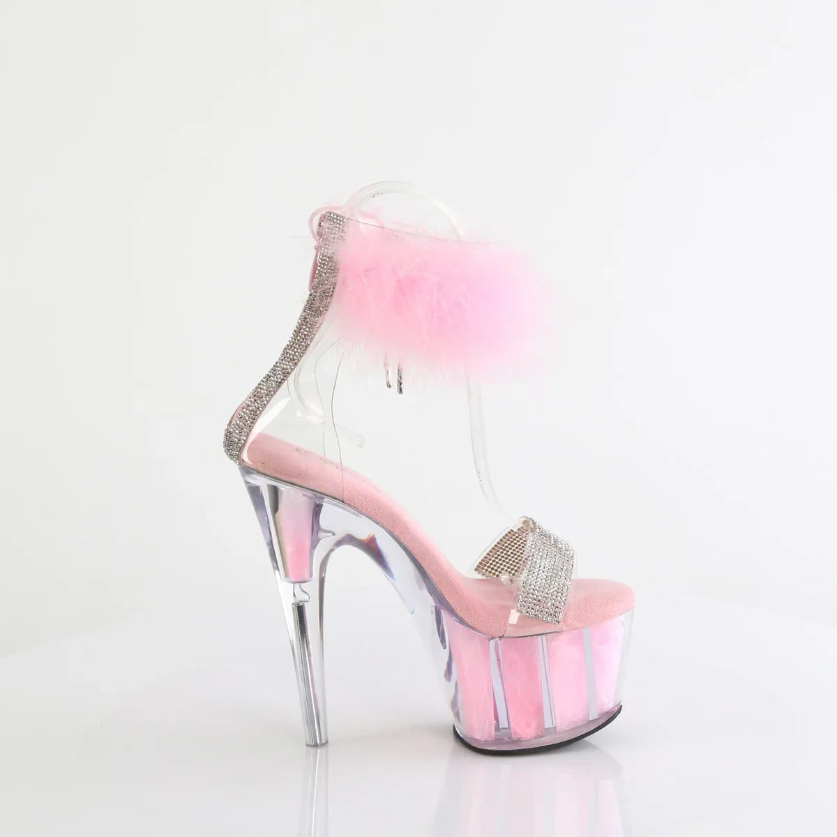 Ligera, elegante y con un look que no pasa desapercibido. La plataforma ayuda a repartir la inclinación del pie y mejora la estabilidad al caminar. Detalles que marcan la diferencia: acabado en pvc, suela de goma, color transparente - b. rosa fur / m. Altura total aprox. 18 cm con plataforma: impacto visual máximo, sin perder control.