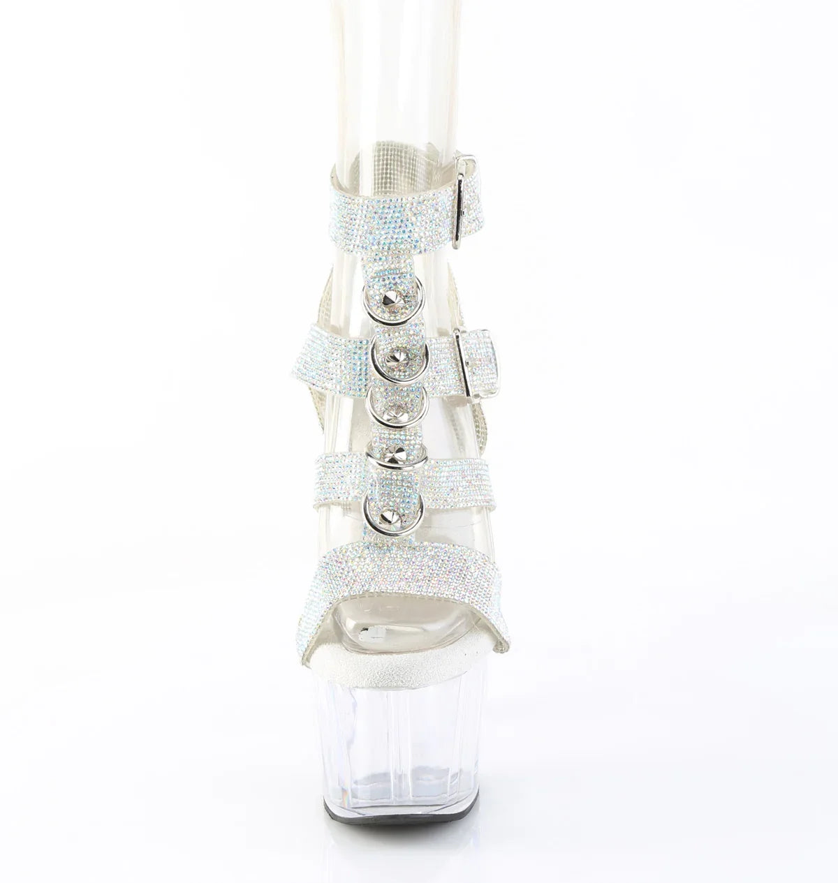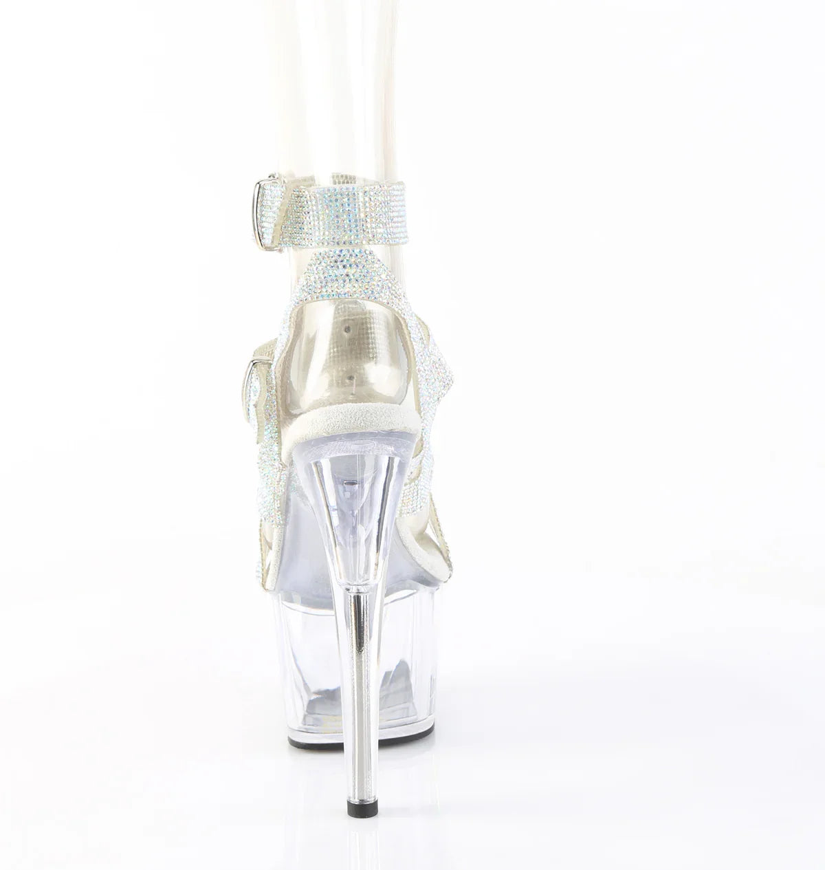 Ligera, elegante y con un look que no pasa desapercibido. La plataforma ayuda a repartir la inclinación del pie y mejora la estabilidad al caminar. Detalles que marcan la diferencia: acabado en tpu, suela de goma, color plata ab rs - tpu / transparente. Altura total aprox. 18 cm con plataforma: impacto visual máximo, sin perder control.