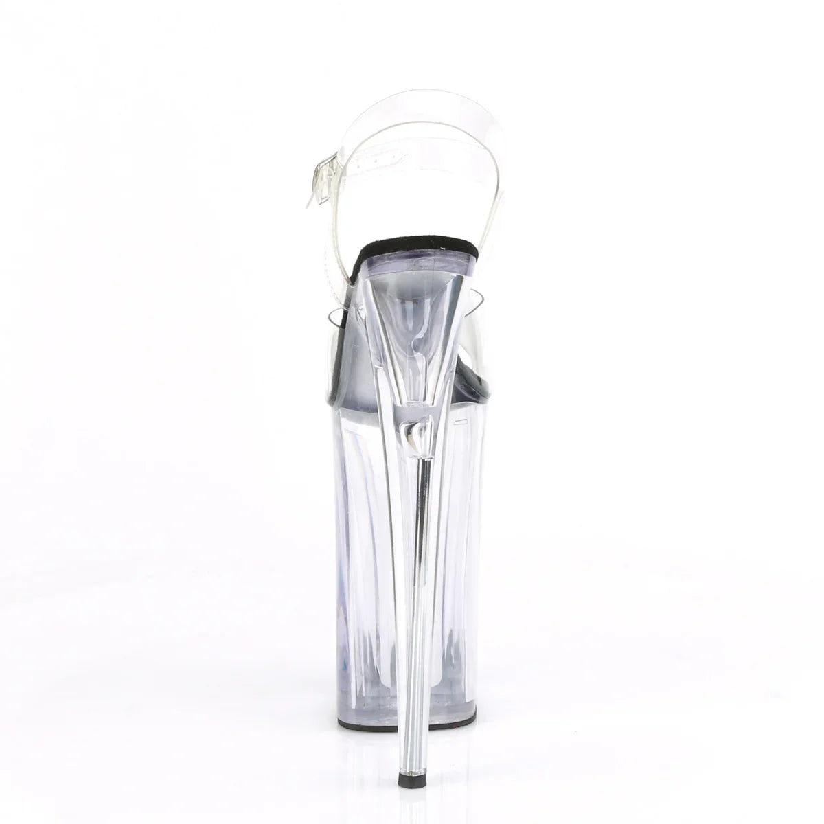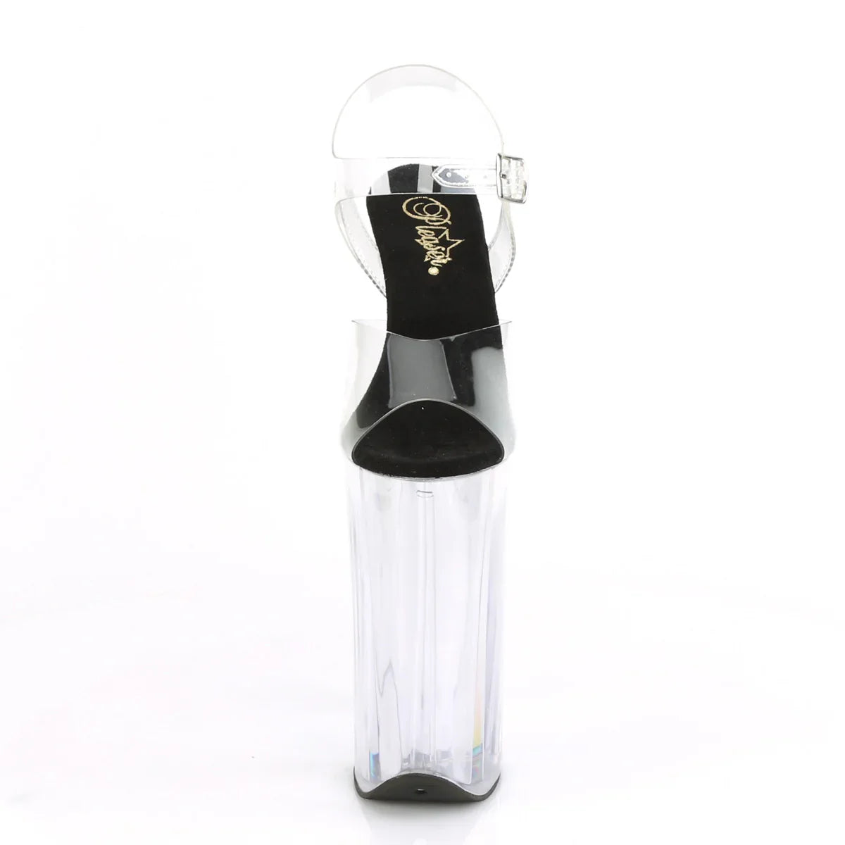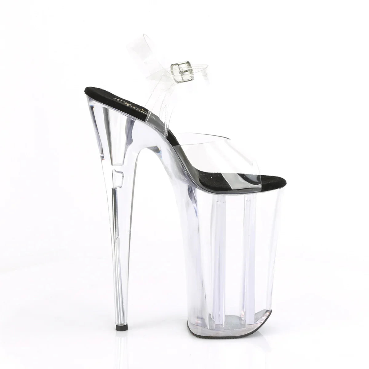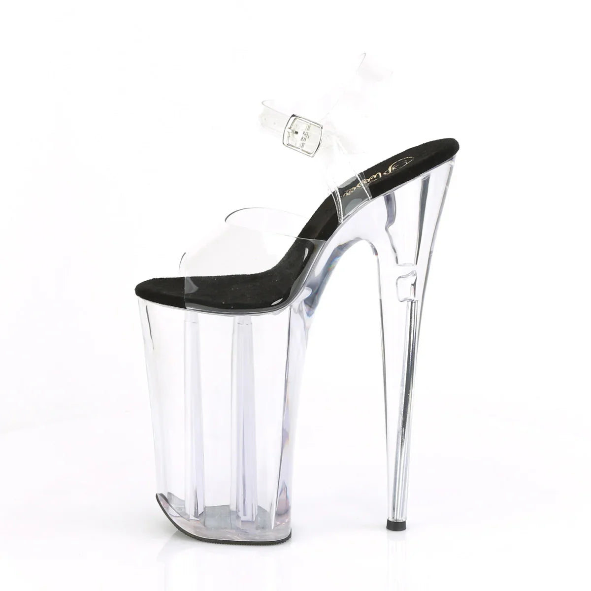 Si quieres un look ‘wow’, esta línea es de las más potentes de Pleaser. Ideal para escenarios, shows y looks de noche que quieren destacar. Detalles clave: plataforma extra alta, acabado en pvc, suela de goma, color transparente - negro / transparente, estilo vegano. Altura aprox.: tacón 26 cm + plataforma 16 cm. Altura y presencia, sin compromisos.