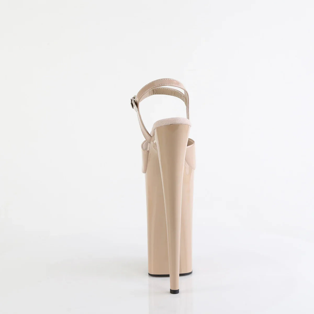 Un statement total: altura, estética y actitud. Sandalia de plataforma extra alta, pensada para un look impactante. Detalles clave: plataforma extra alta, acabado en pu, suela de goma, color nude charol / nude, estilo vegano. Altura aprox.: tacón 26 cm + plataforma 16 cm. Un acierto para quien quiere destacar de verdad.