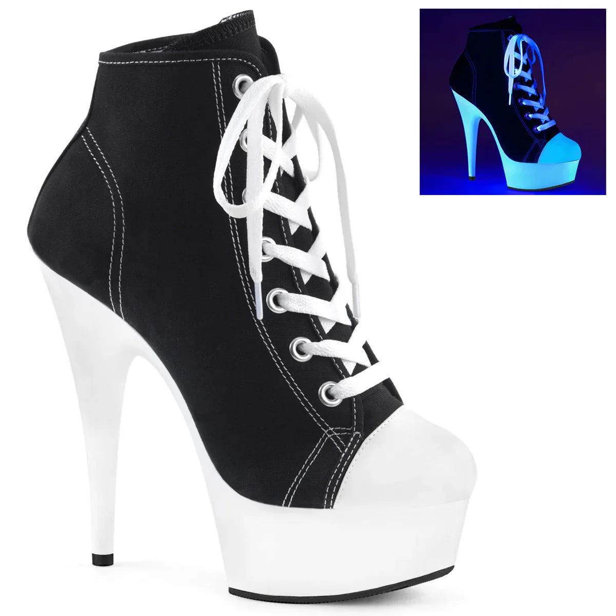 Potente y estilosa: una bota que levanta cualquier outfit al instante. La plataforma ayuda a repartir la inclinación del pie y mejora la estabilidad al caminar. Detalles que marcan la diferencia: acabado en lona, suela de tpr, color negro canvas / neon white. Altura total aprox. 15 cm con plataforma: impacto visual máximo, sin perder control.