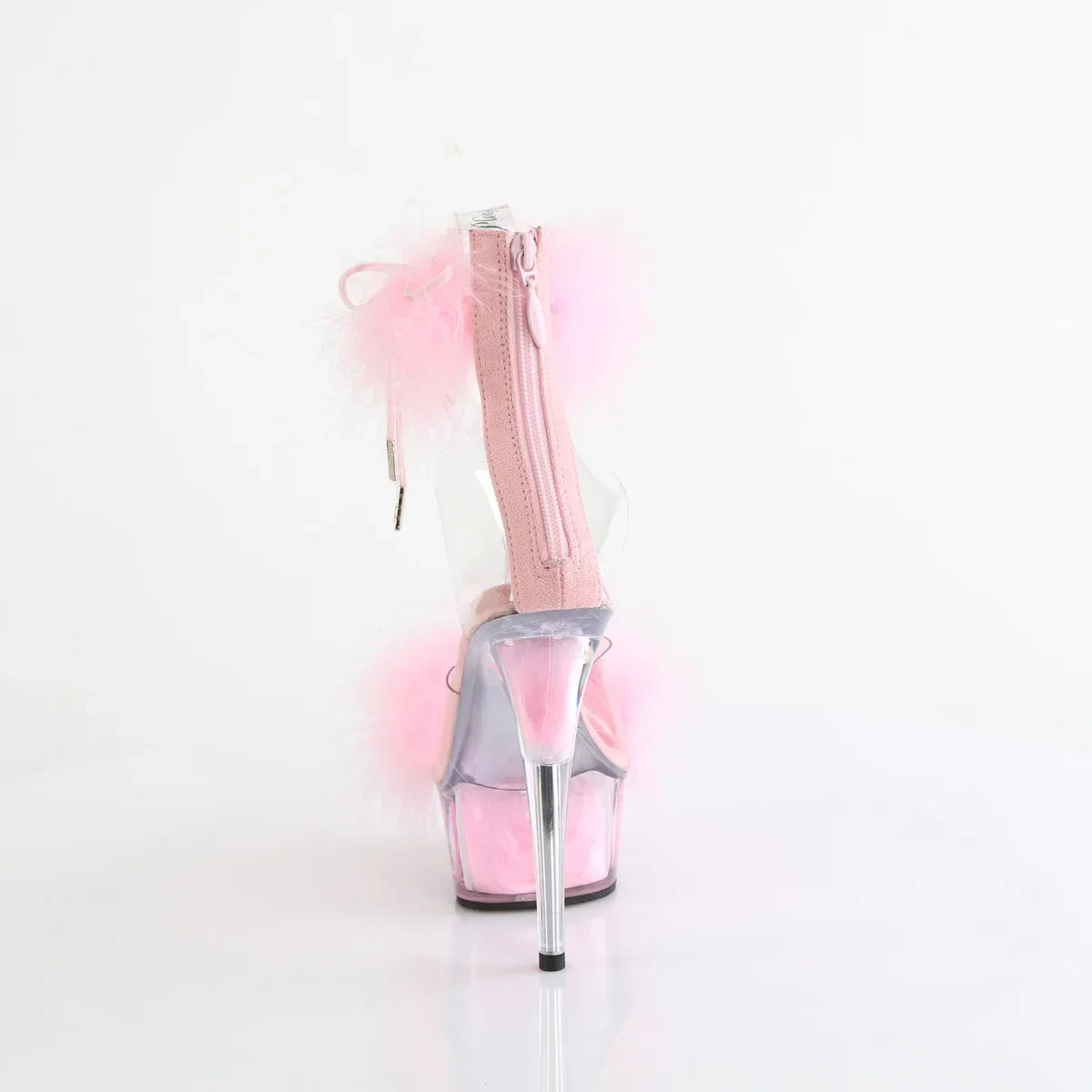 Ligera, elegante y con un look que no pasa desapercibido. La plataforma ayuda a repartir la inclinación del pie y mejora la estabilidad al caminar. Detalles que marcan la diferencia: acabado en pvc, suela de goma, color transparente - b. rosa fur / m. Altura total aprox. 15 cm con plataforma: impacto visual máximo, sin perder control.