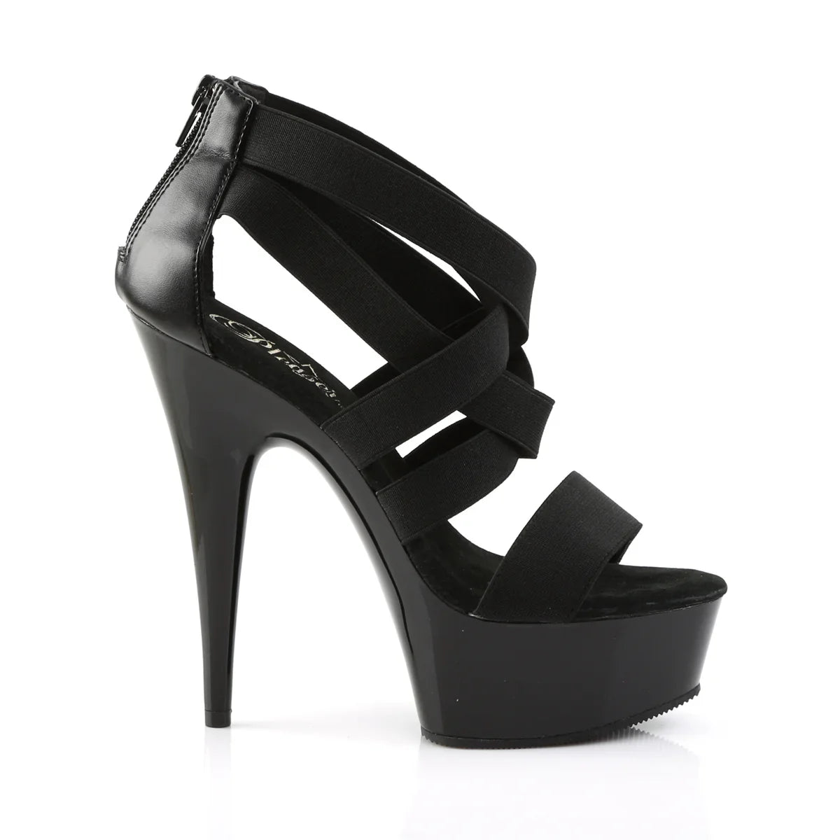 Ligera, elegante y con un look que no pasa desapercibido. La plataforma ayuda a repartir la inclinación del pie y mejora la estabilidad al caminar. Detalles que marcan la diferencia: acabado en elastic, suela de goma, color negro elastic band - piel sintética / negro. Altura total aprox. 15 cm con plataforma: impacto visual máximo, sin perder control.