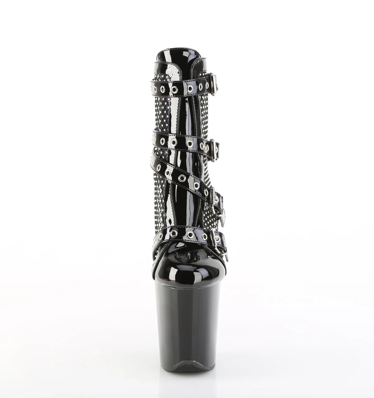 Una bota que impone: estiliza la pierna, suma presencia y convierte cualquier look en protagonista. Este modelo es un/una bota de tacón. La plataforma ayuda a repartir la inclinación del pie y se nota en la estabilidad. Detalles que suman: acabado en pat, suela de goma, color negro charol - rs malla / negro. Altura total aprox. 20 cm con plataforma: impacto visual máximo sin perder control.