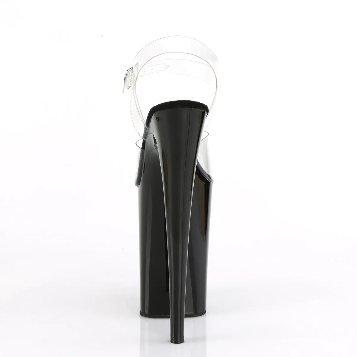 Ligera, elegante y con un look que no pasa desapercibido. La plataforma ayuda a repartir la inclinación del pie y mejora la estabilidad al caminar. Detalles que marcan la diferencia: acabado en pvc, suela de goma, color transparente / negro. Altura total aprox. 23 cm con plataforma: impacto visual máximo, sin perder control.