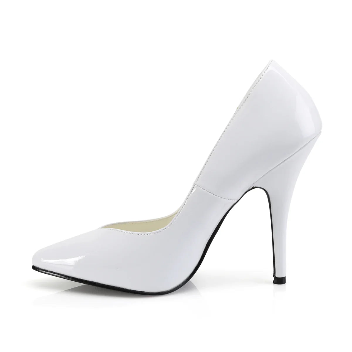 Si buscas un tacón estilizado que se vea ‘premium’, aquí lo tienes. Perfecto para looks formales con un punto sexy. Detalles clave: acabado en pat, suela de goma, color blanco charol, estilo vegano. Altura aprox. del tacón: 13 cm. Un básico de armario con el sello Pleaser.