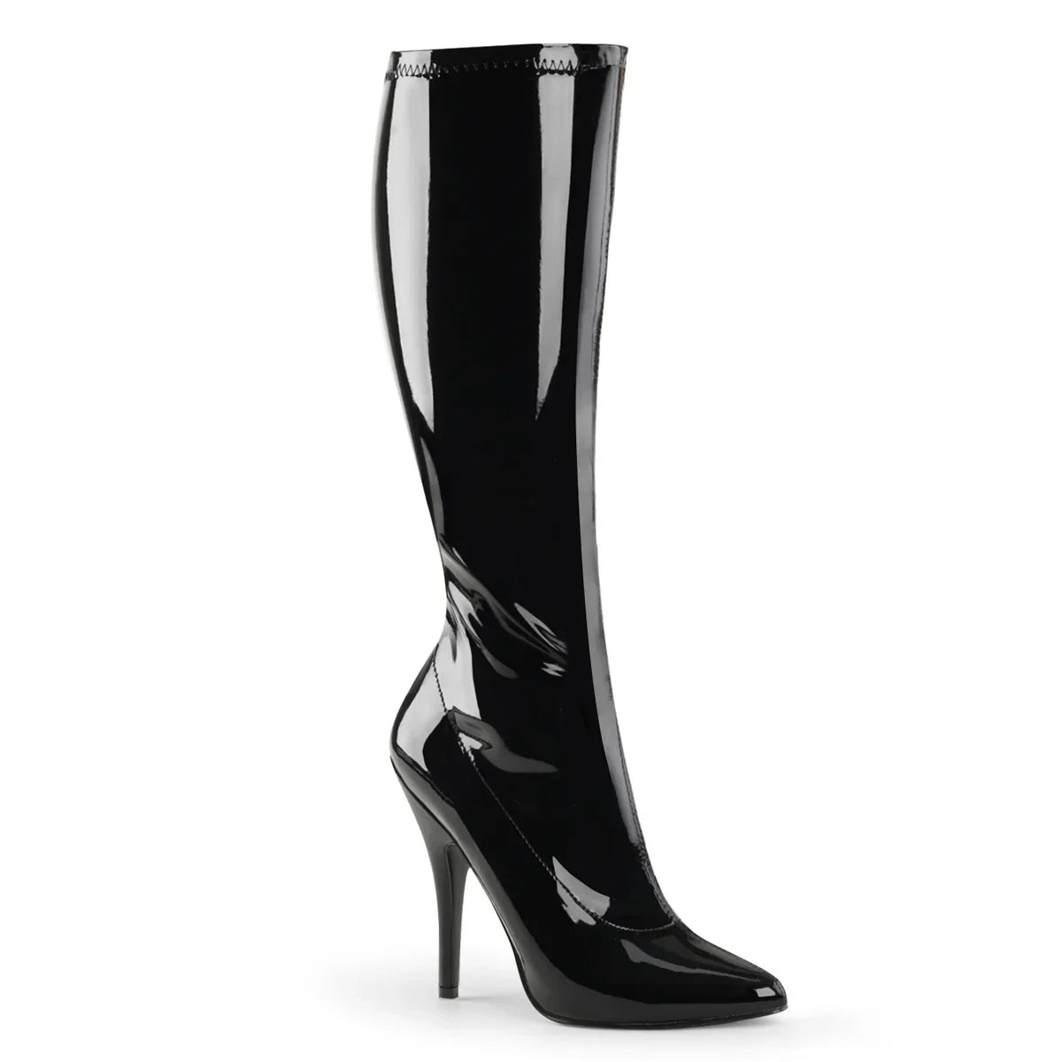 El tipo de tacón que transforma un outfit al instante. Bota con carácter y acabado sofisticado para un look más potente. Detalles clave: acabado en pat, suela de goma, color negro str charol, estilo vegano. Altura aprox. del tacón: 13 cm. Ideal para noche, evento o cualquier ocasión especial.