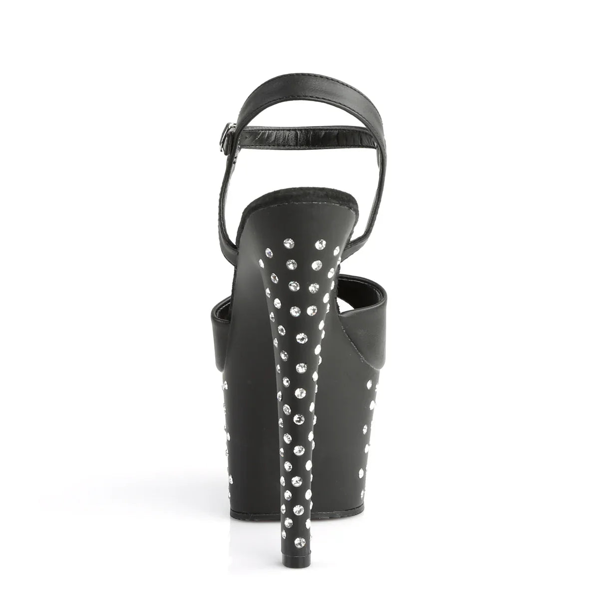Si quieres brillar con estilo, aquí lo tienes. Sandalia de tacón con líneas limpias y un look muy favorecedor. Detalles clave: plataforma para mejorar la estabilidad, acabado en pu, suela de goma, color negro piel sintética / negro mate, estilo vegano. Altura aprox.: tacón 18 cm + plataforma 7 cm. Perfecto para noche, evento o cualquier ocasión especial.