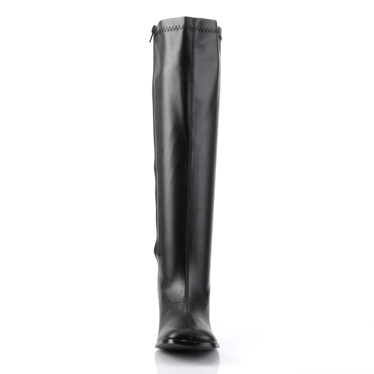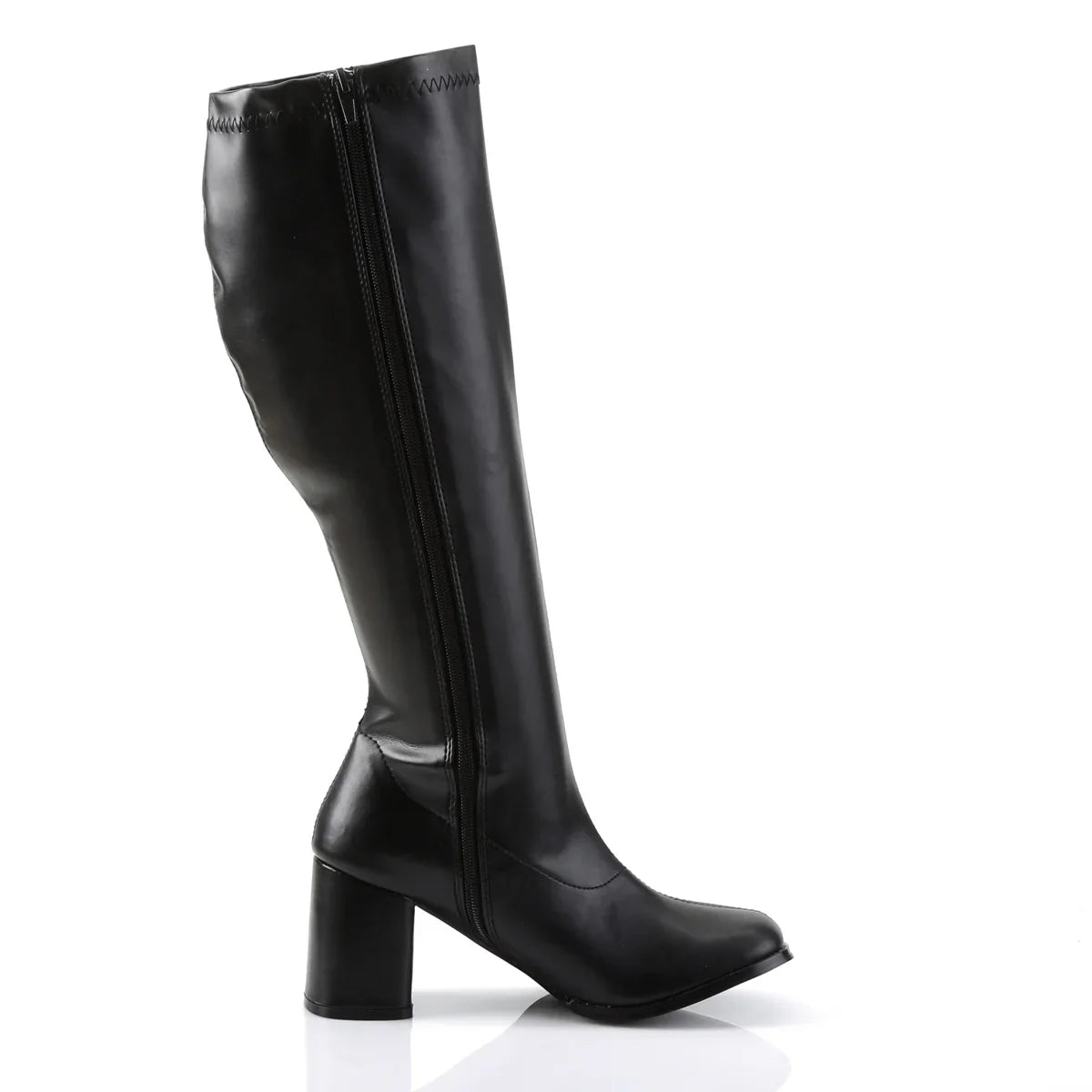 The perfect finishing touch for a well-executed themed outfit. A boot with character and a whimsical aesthetic, ideal for special occasions. Key details: PU finish, TPR sole, black PU upper, vegan style. Approximate heel height: 8 cm. Guaranteed to make a statement.
