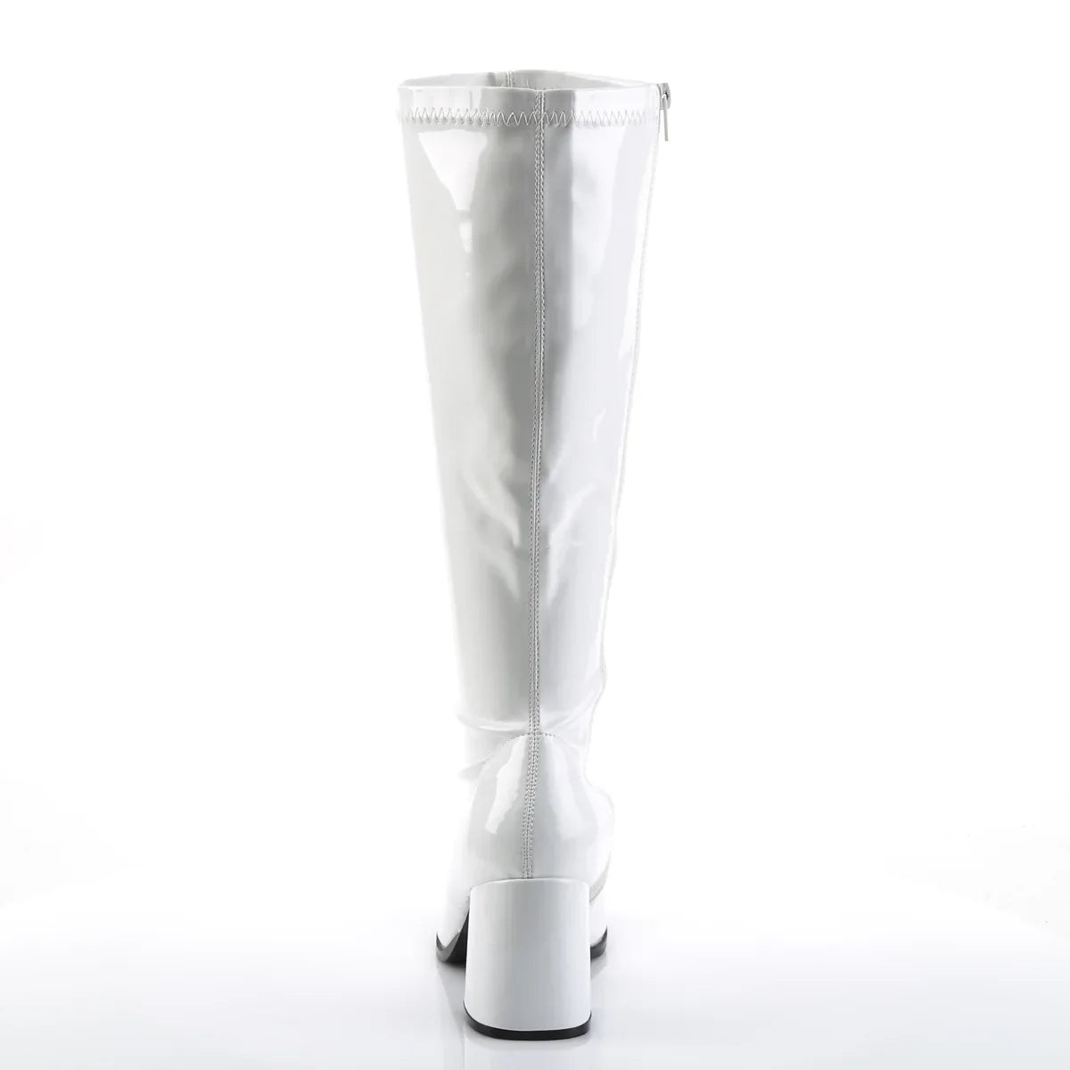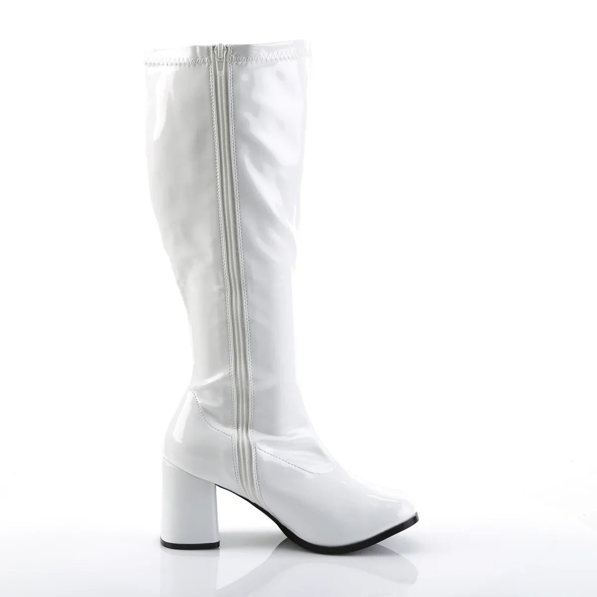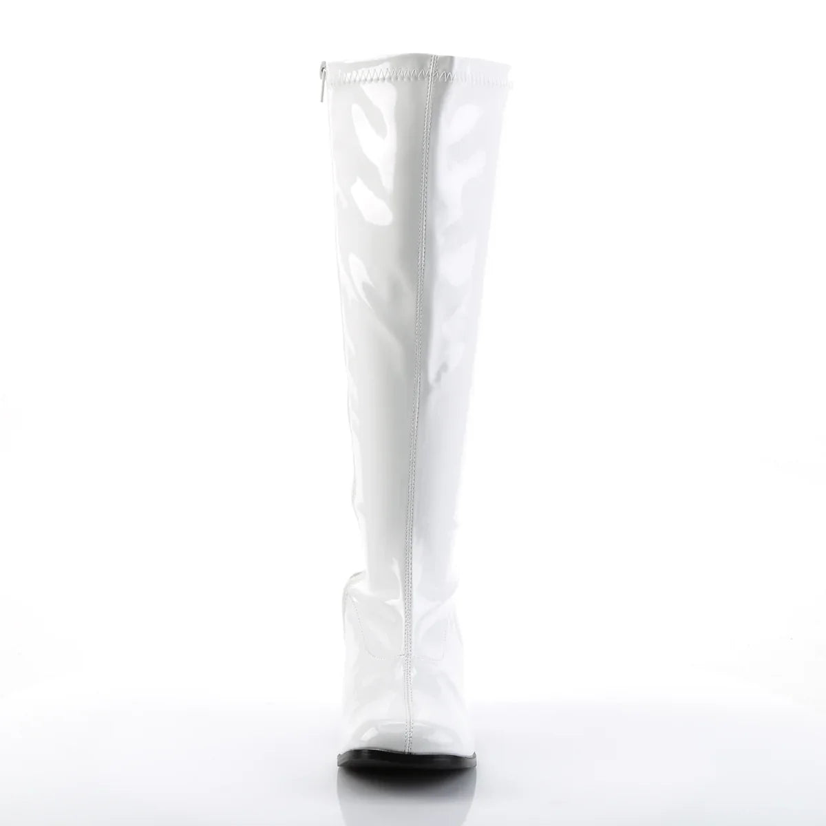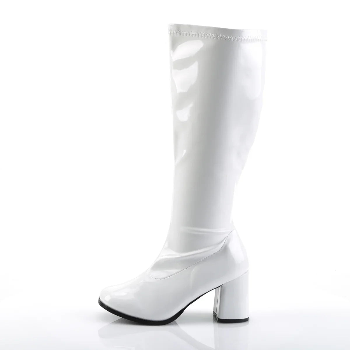 The finishing touch for a perfectly crafted themed outfit. A statement boot for themed looks and stage sets. Key details: patent leather finish, TPR sole, white patent leather upper, vegan style. Approx. heel height: 8 cm. The detail that makes all the difference.