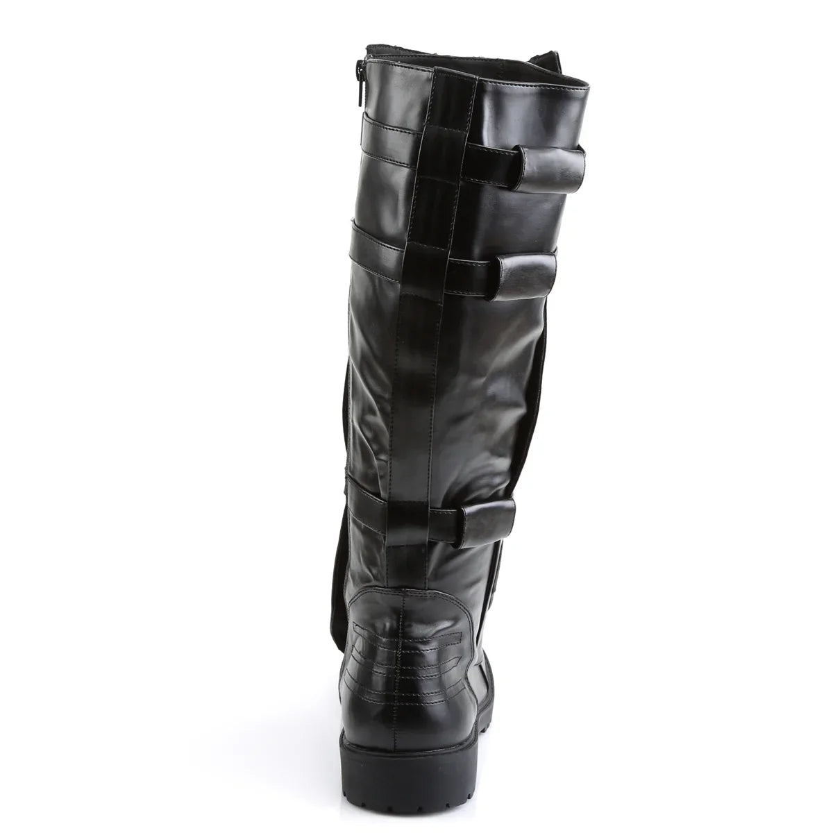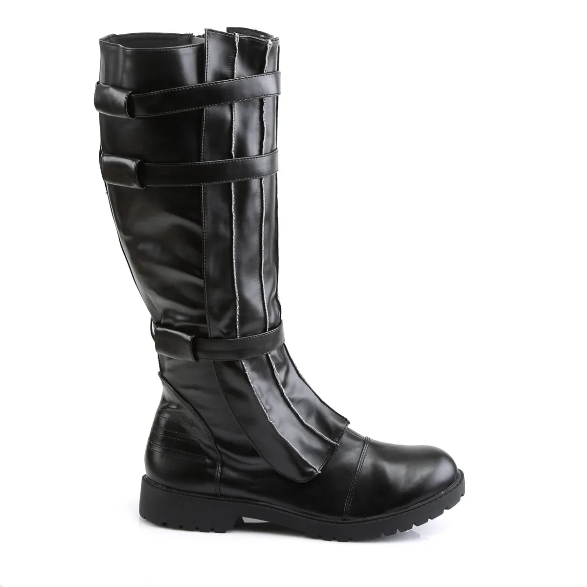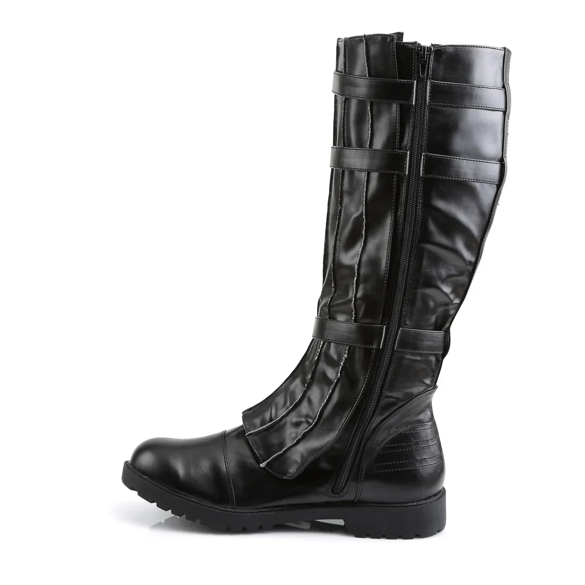 A statement boot that commands attention. Perfect for themed looks and stage performances. Key details: platform, PU finish, rubber sole, black PU color, vegan style. Approx. height: 0 cm heel + 3 cm platform. Perfect for events and photoshoots.