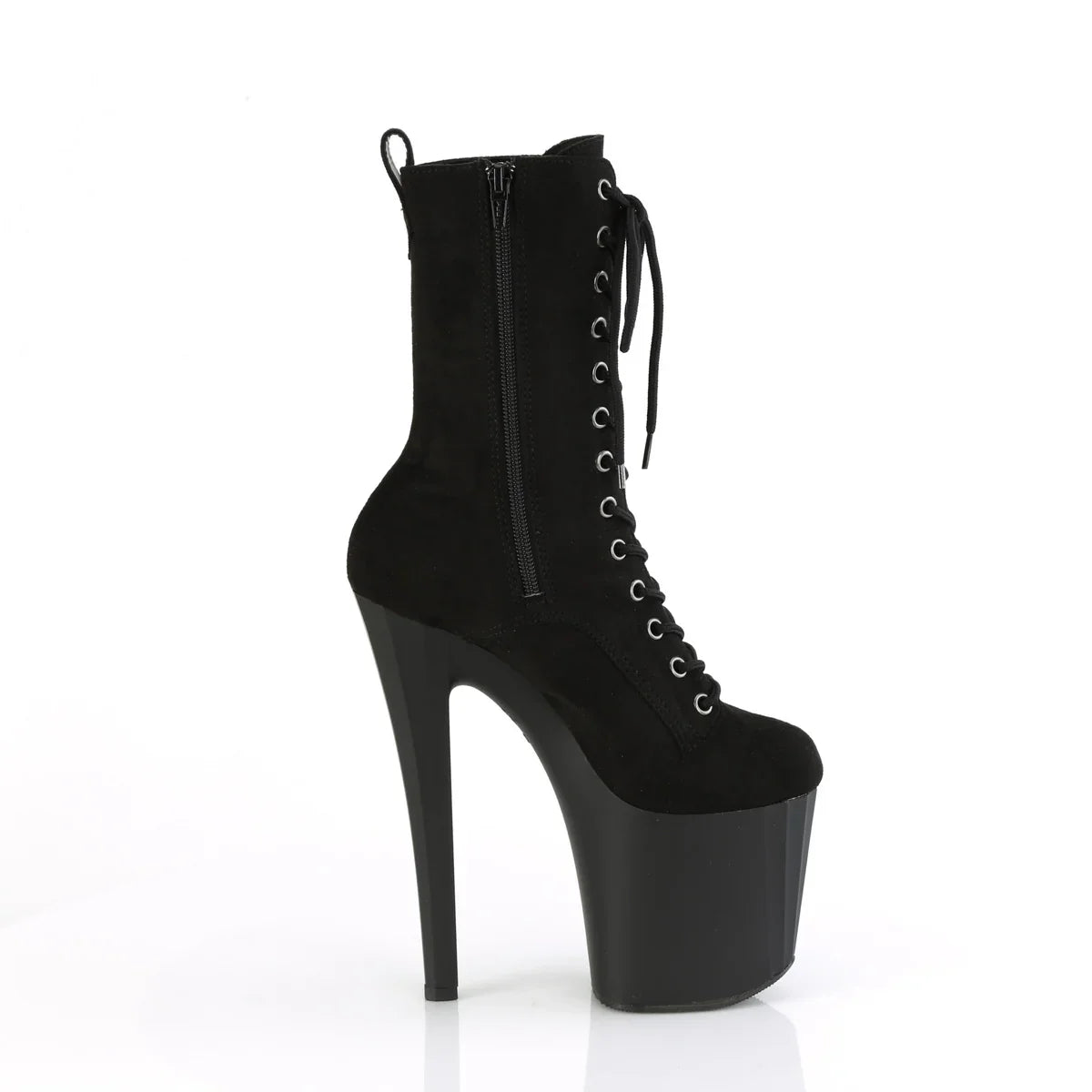 Clean lines and a commanding presence: a style that makes a statement without being over the top. Perfect for special occasions, evenings out, and bold combinations. Key details: platform heel, microfiber upper, rubber sole, faux suede/matte black colorway, vegan style. Approx. height: 19 cm heel + 10 cm platform. When you want to stand out in style.