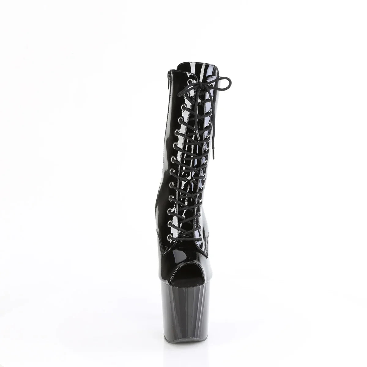 A refined and flattering style, perfect for special occasions. A stylish boot that elevates any outfit in seconds. Key details: platform, patent leather finish, rubber sole, black patent leather/black color, vegan style. Approx. height: 20 cm heel + 10 cm platform. Sophisticated, eye-catching, and with presence.