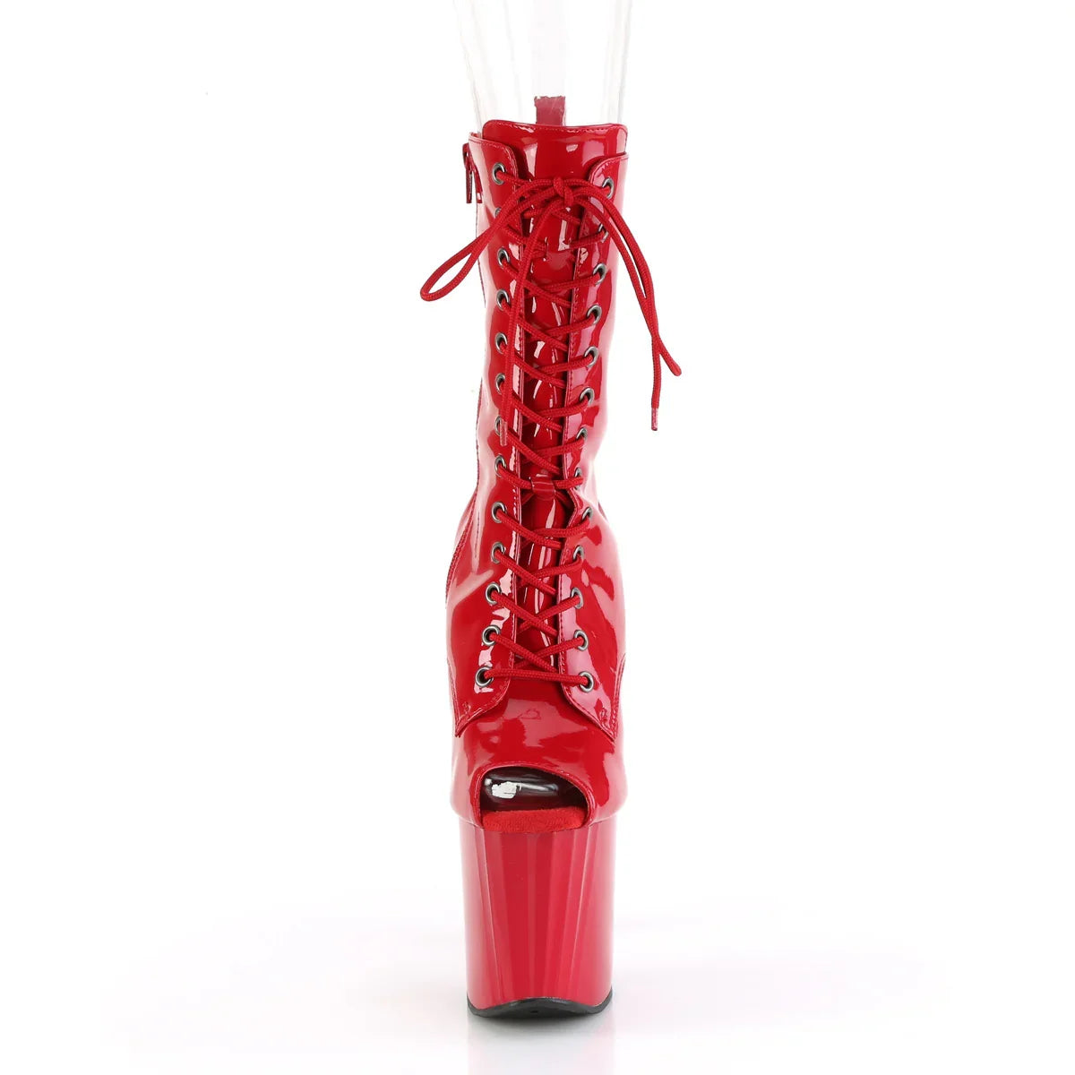 Elegance with a special touch: a design that elevates your look. Heeled boot with a polished aesthetic for a stylish statement. Key details: platform, patent leather finish, rubber sole, red patent leather/red color, vegan style. Approx. height: 20 cm heel + 10 cm platform. Elegant and easy to style.