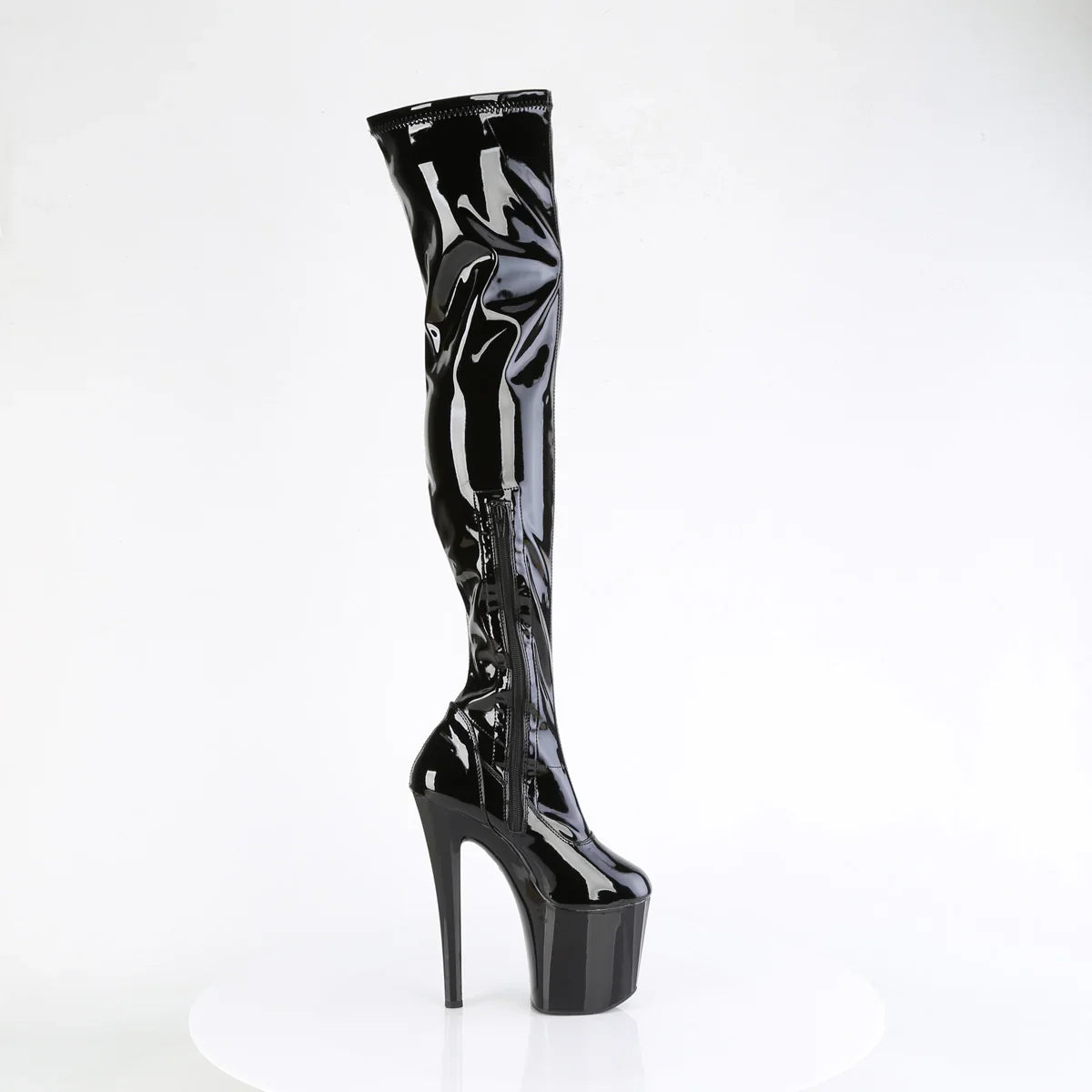 A refined and flattering style, perfect for special occasions. Ideal for event looks, evenings out, and bold combinations. Key details: platform, patent leather finish, rubber sole, black patent leather/black color, vegan style. Approx. height: 20 cm heel + 10 cm platform. A sure hit for events and evenings out.