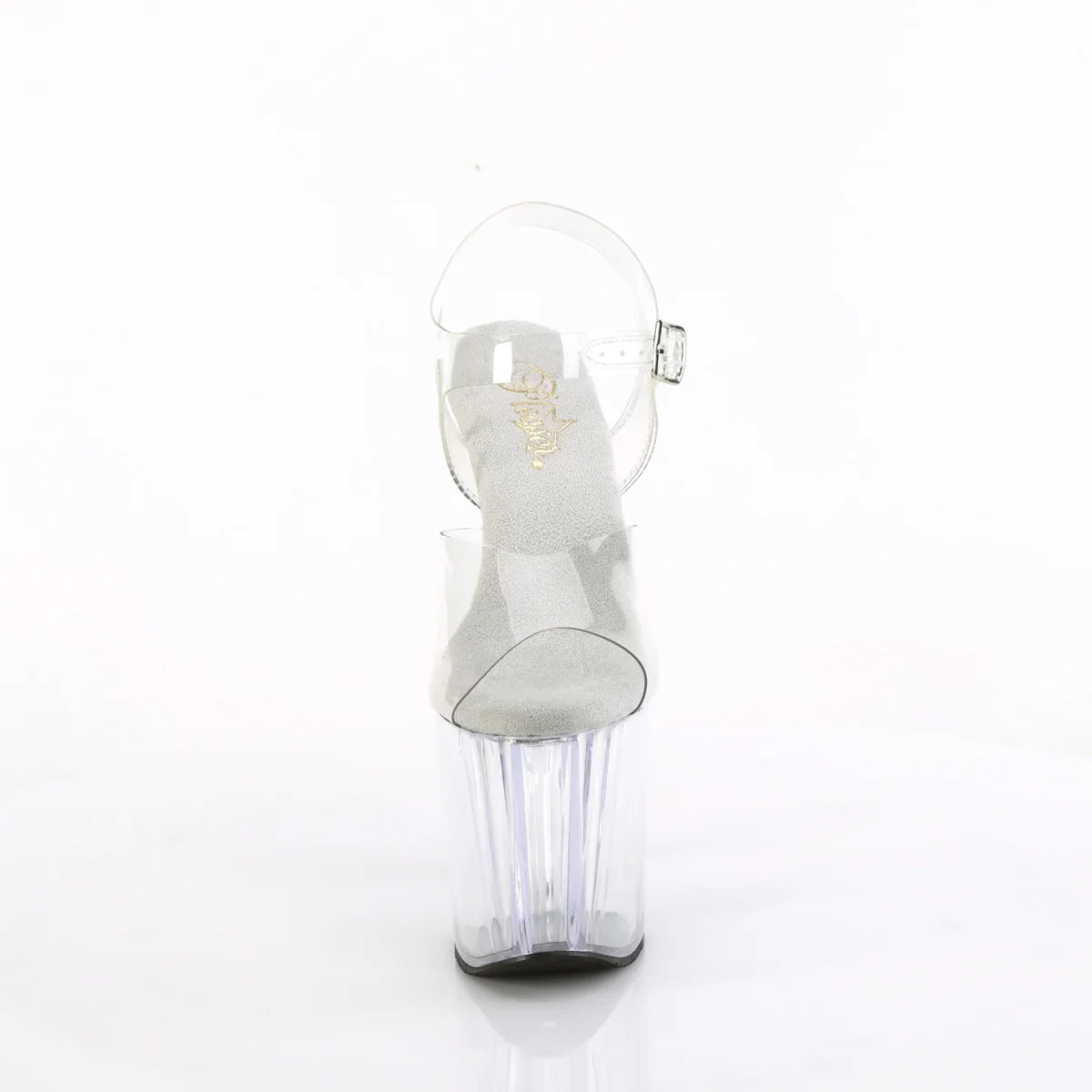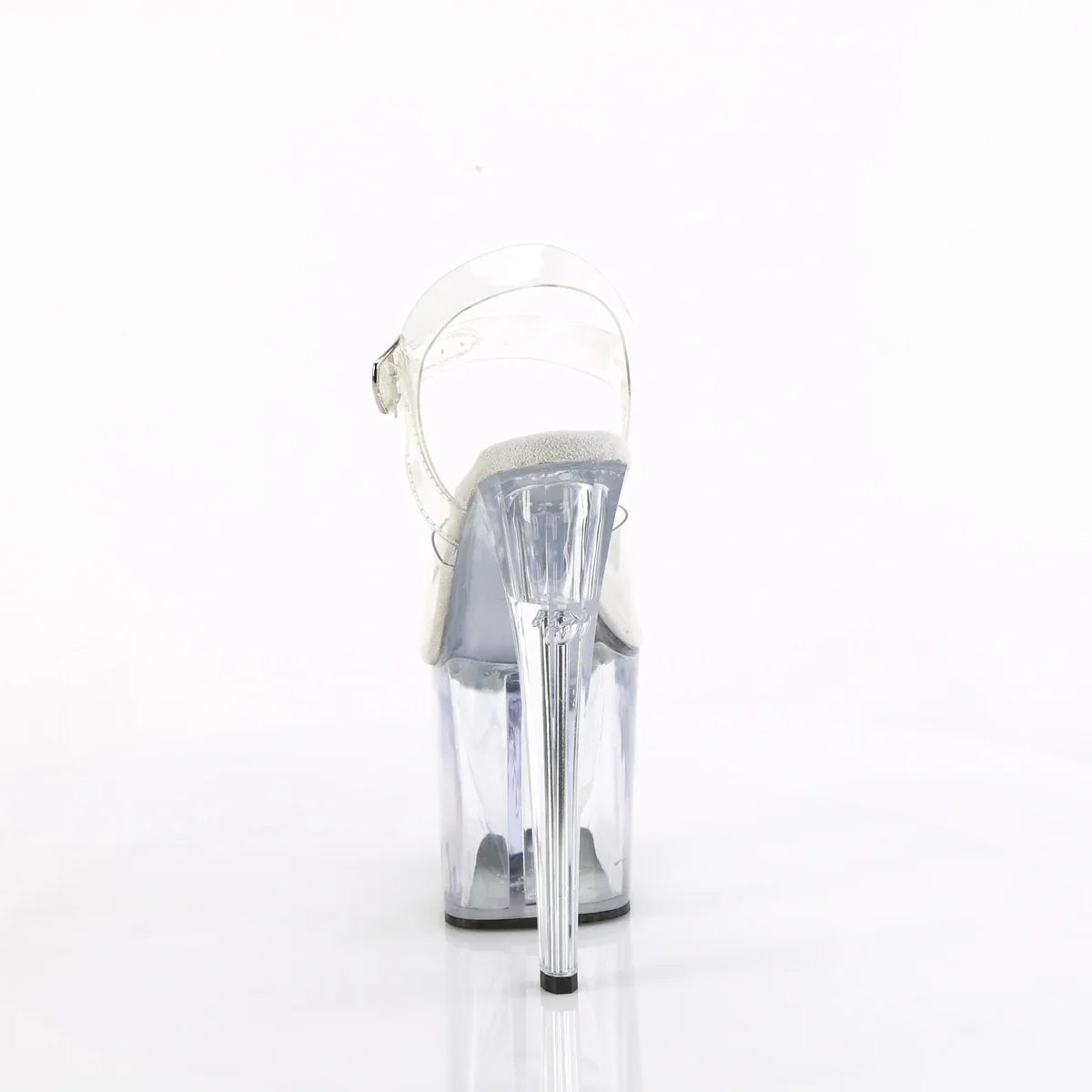 A refined and flattering style, perfect for special occasions. An elegant staple for evening looks and special events. Key details: platform, PVC finish, rubber sole, transparent/clear color, vegan style. Approx. height: 20cm heel + 10cm platform. When you want to stand out in style.