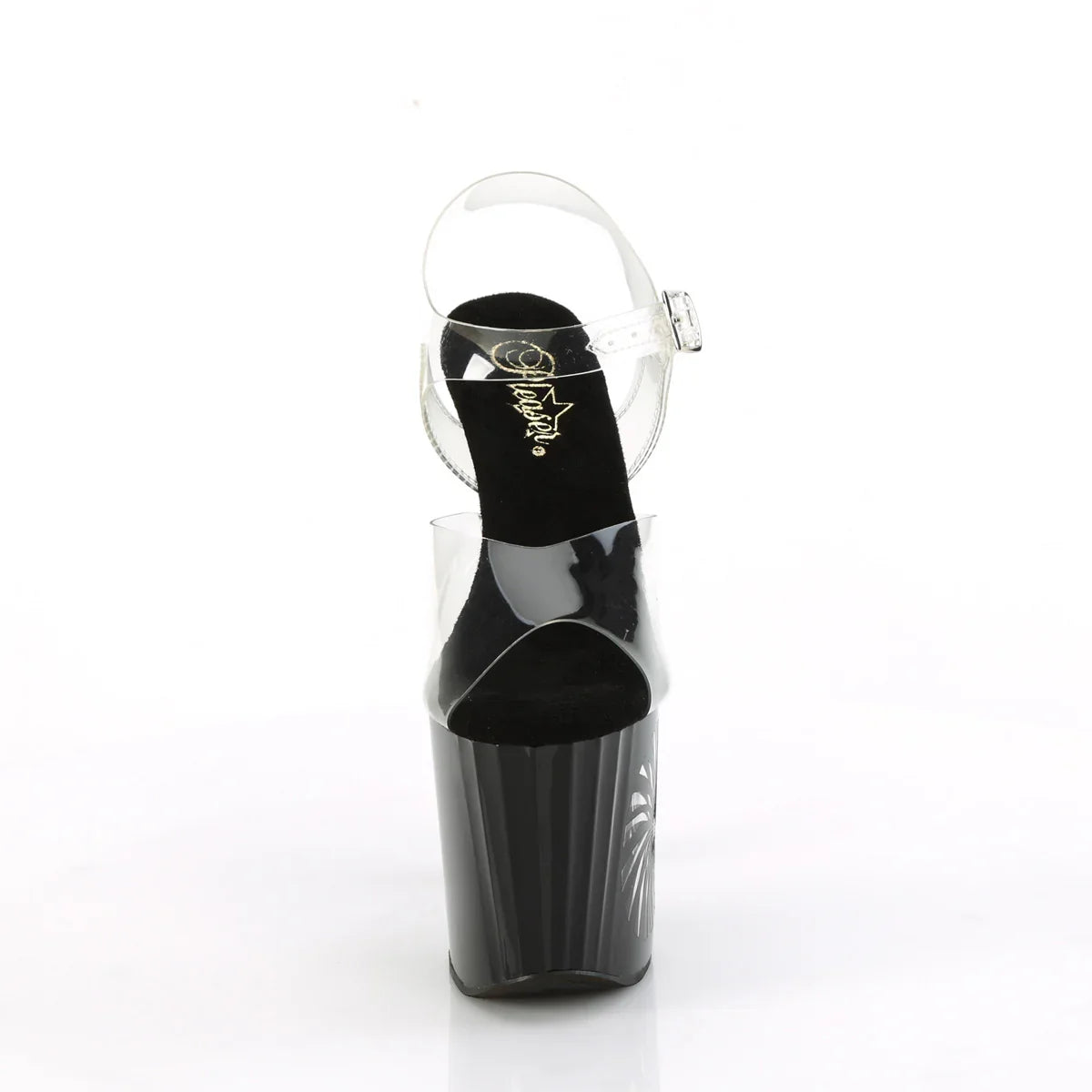 A refined and flattering style, perfect for special occasions. An elegant staple for evening looks and special events. Key details: platform, PVC finish, rubber sole, transparent/black - silver glitter color, vegan style. Approx. height: 20 cm heel + 10 cm platform. When you want to stand out in style.