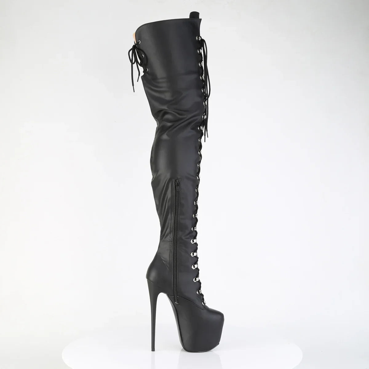 A festive and highly visual touch: an eye-catching design to stand out. Height and style to make a statement effortlessly. Key details: platform, PU finish, rubber sole, black synthetic leather upper, vegan style. Approx. height: 18 cm heel + 8 cm platform. When you really want to stand out.