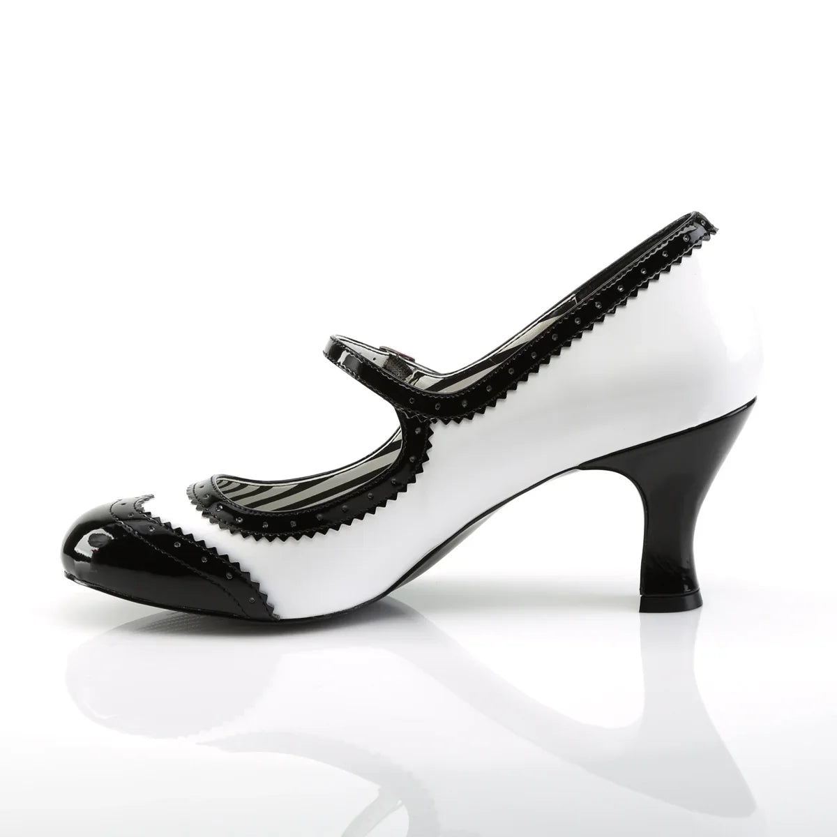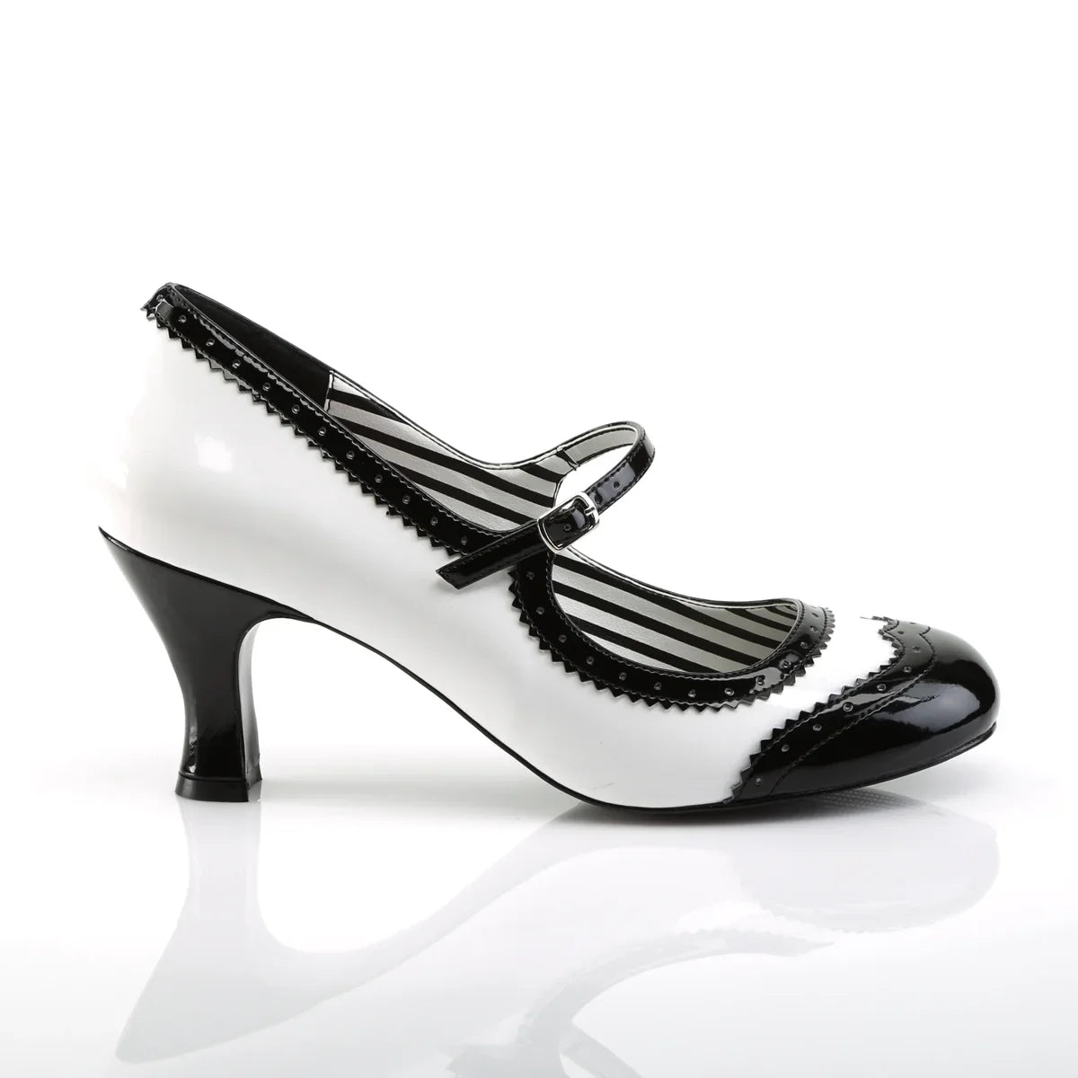 The premium touch for a perfect look. Comfortable and visually striking design for events, photoshoots, and stylish everyday wear. Key details: patent leather finish, rubber sole, white and black patent leather, vegan style. Approx. heel height: 8 cm. Premium finish.