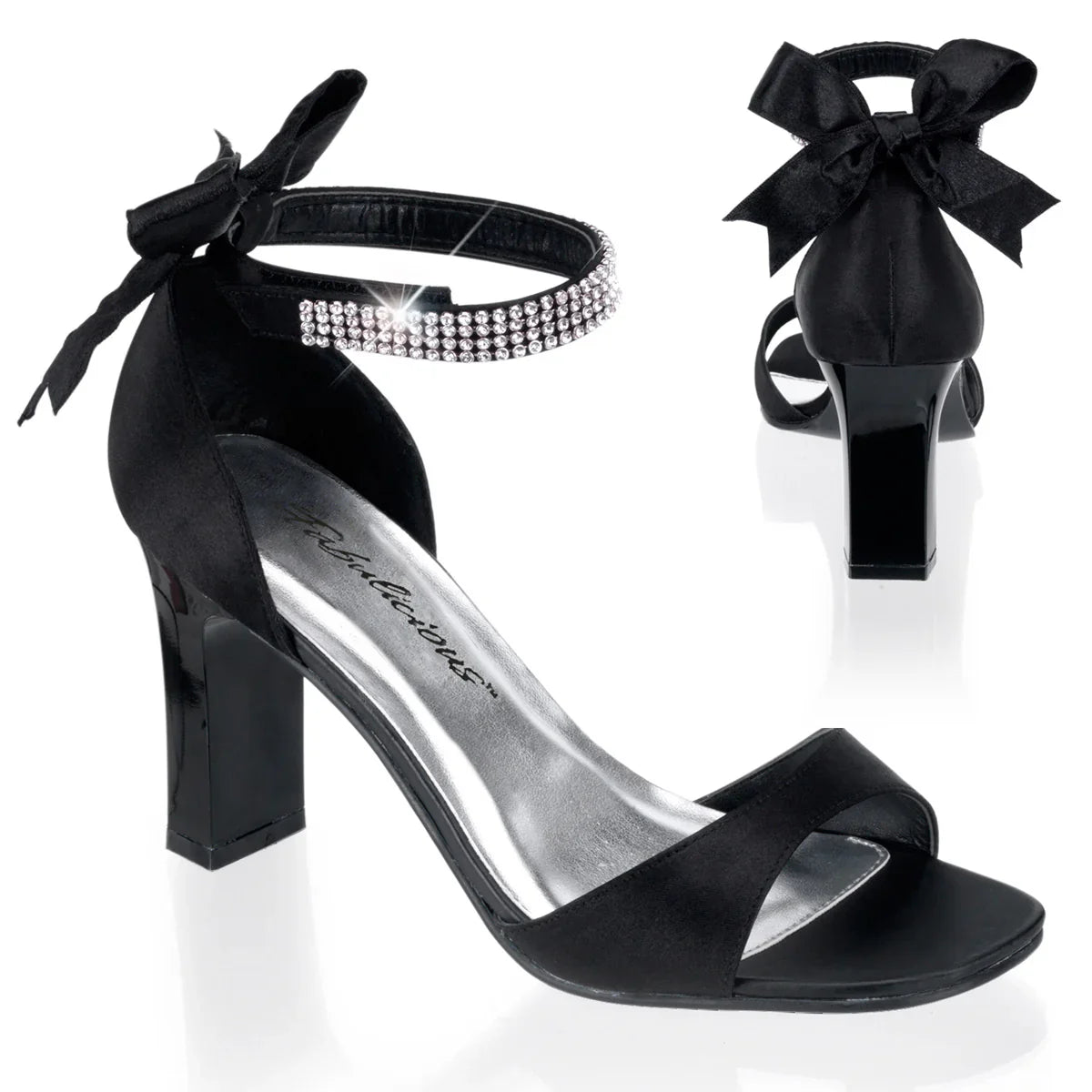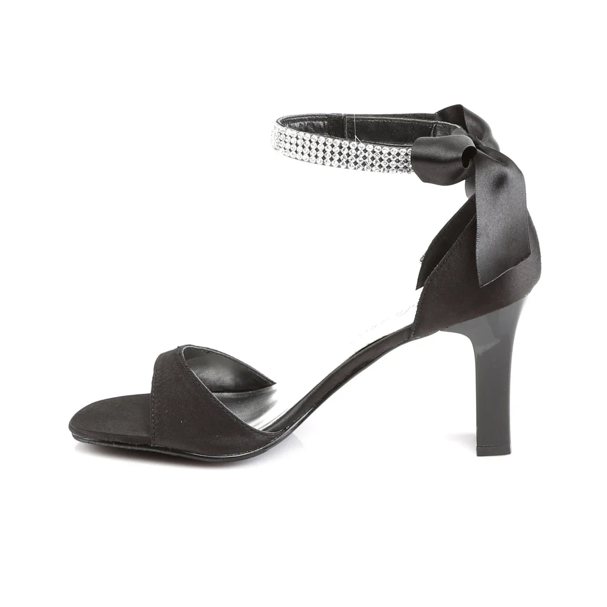 A sophisticated design made to shine. Comfortable and visually striking, perfect for events, photoshoots, and stylish everyday looks. Key details: satin finish, rubber sole, black satin color, vegan style. Approximate heel height: 8 cm. Guaranteed elegance.