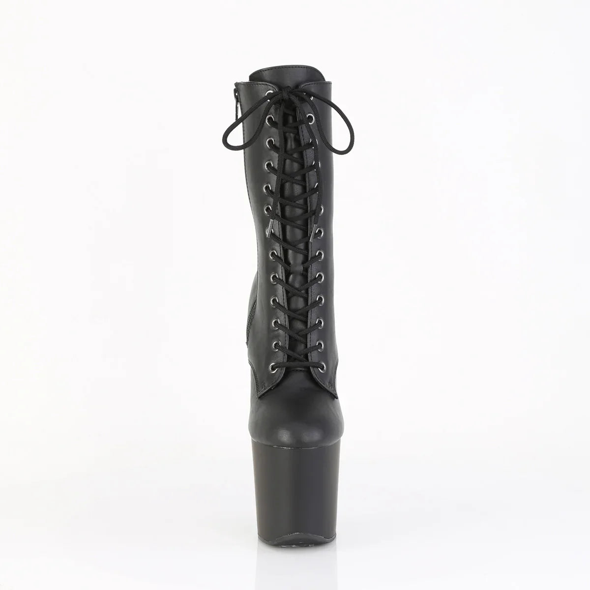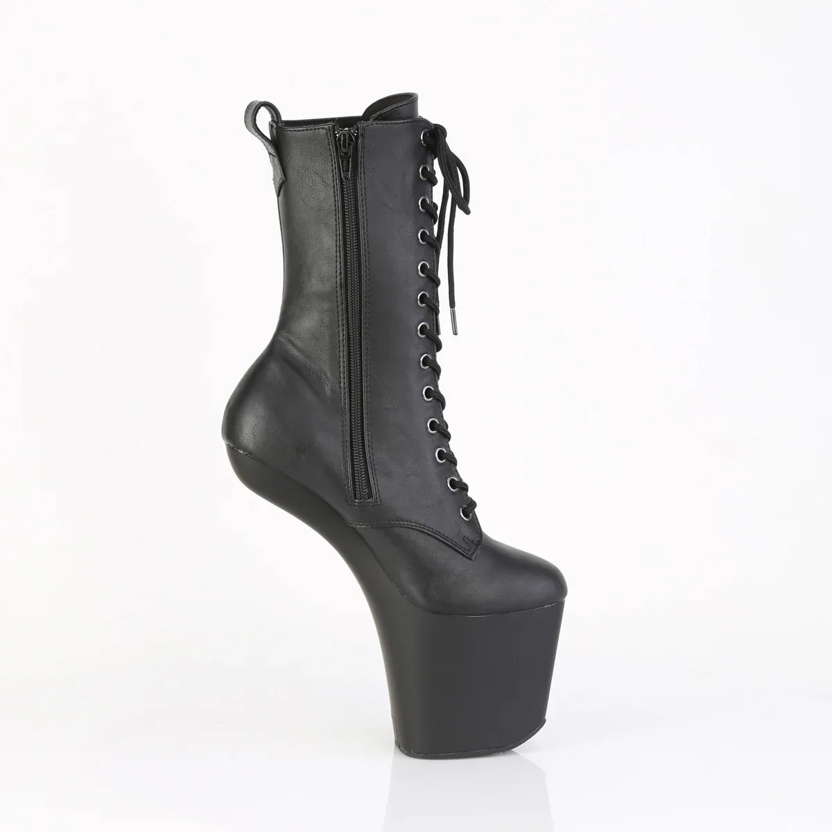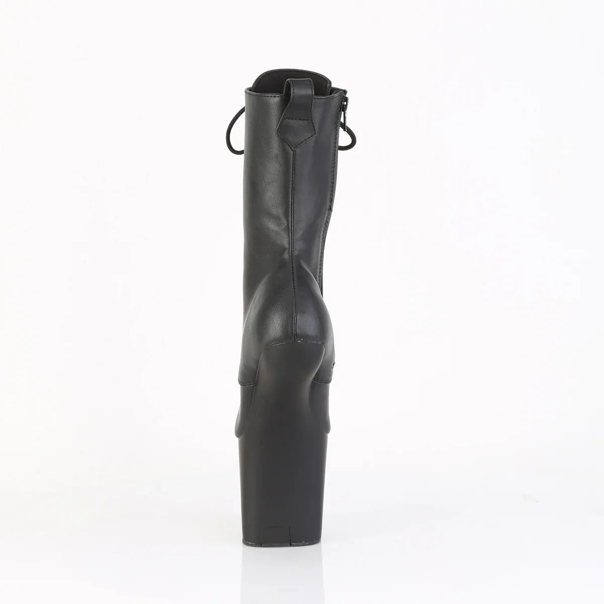 A modern look that makes a statement at first glance. Platform boots with a bold aesthetic and plenty of presence. Key details: platform, PU finish, rubber sole, black faux leather/matte black, vegan style. Approx. height: 20 cm heel + 8 cm platform. Instant impact.