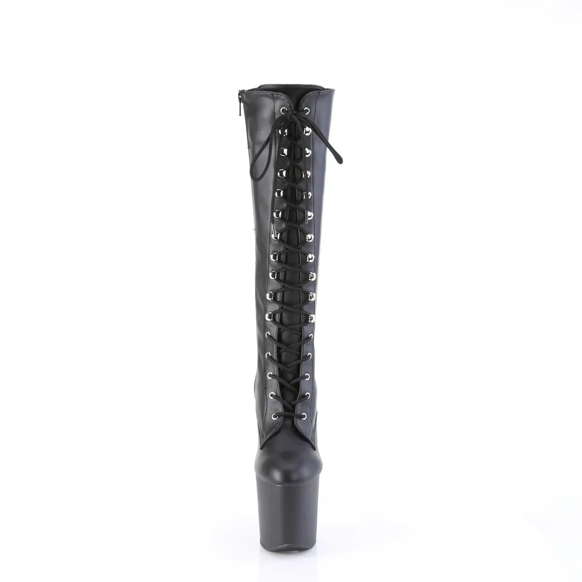 For when you want a bolder, more eye-catching outfit. Platform boots with a statement aesthetic and plenty of presence. Key details: platform, PU finish, rubber sole, black synthetic leather/matte black upper, vegan style. Approx. height: 20 cm heel + 8 cm platform. Instant impact.