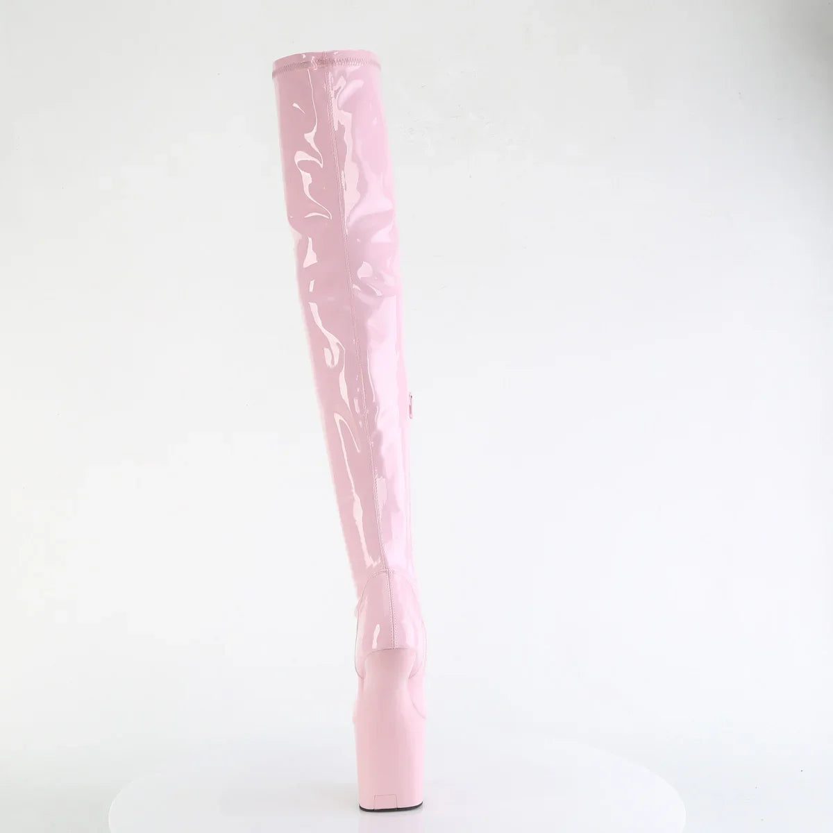 A bold and eye-catching design to make a statement. A modern boot for powerful looks and special nights. Key details: platform, patent leather finish, rubber sole, pink patent leather/pink color, vegan style. Approx. height: 20 cm heel + 8 cm platform. Instant impact.