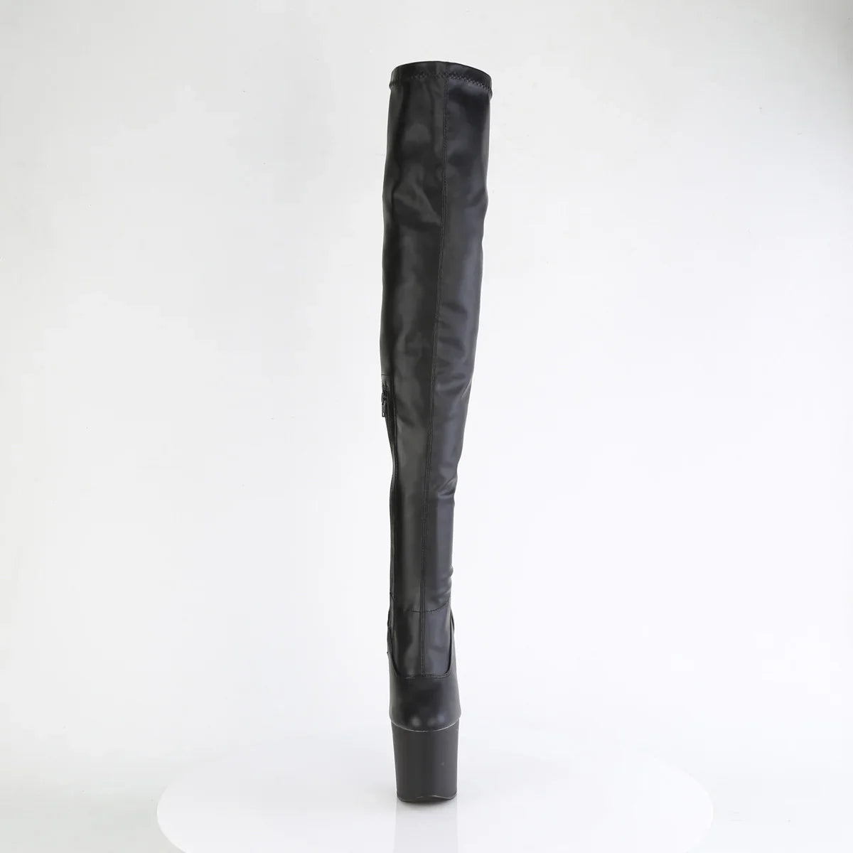 A modern look that commands attention at first glance. Height and style for effortless style. Key details: platform, PU finish, rubber sole, black synthetic leather/matte black upper, vegan style. Approx. height: 20 cm heel + 8 cm platform. Looks stunning in photos and in person.