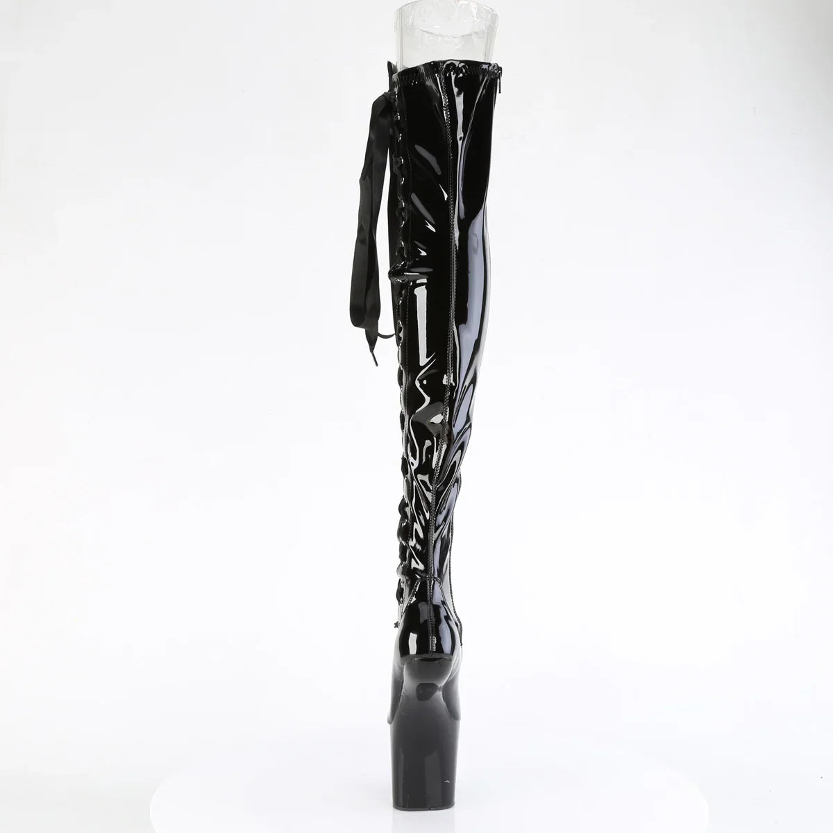 Eye-catching and effortlessly stylish. Platform boots with a statement aesthetic and a commanding presence. Key details: platform, patent leather finish, rubber sole, black patent leather/black color combination, vegan style. Approx. height: 20 cm heel + 8 cm platform. Stunning in photos and in person.