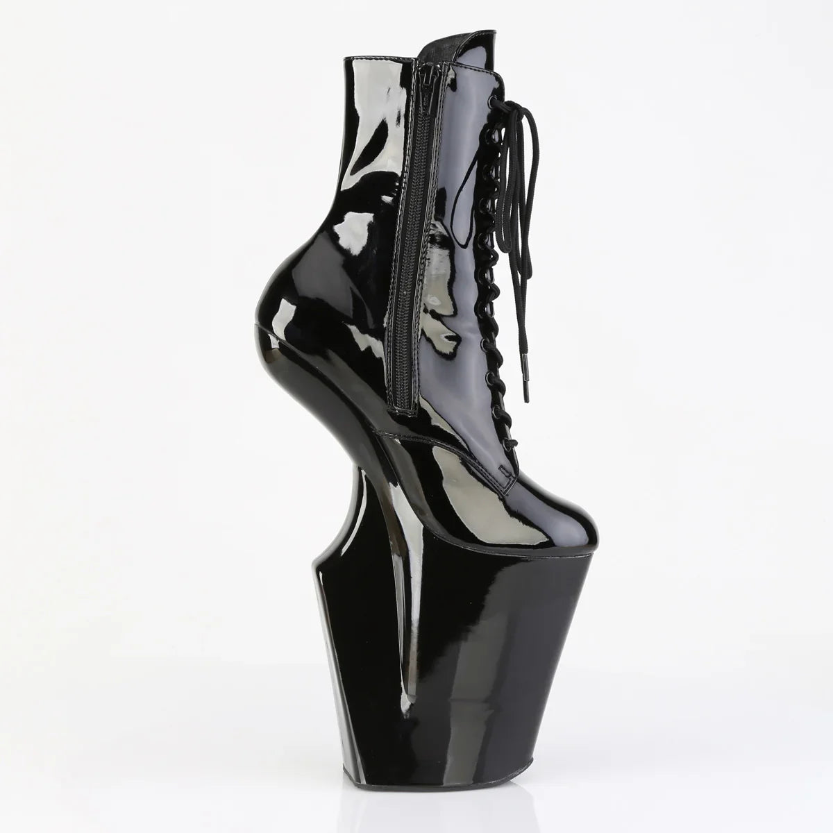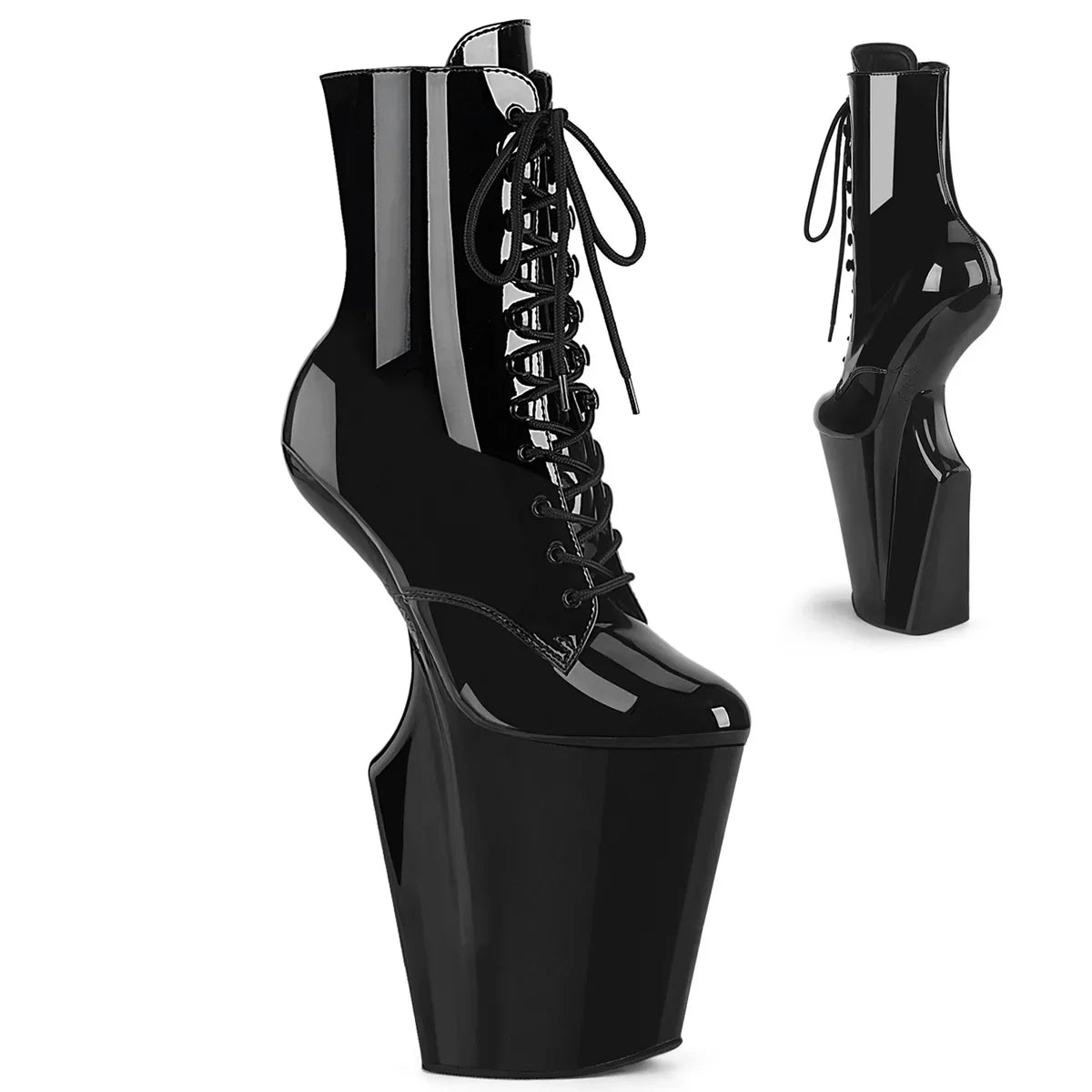 For when you want to stand out with a polished and powerful look. Height and style to make an effortless statement. Key details: platform, patent leather finish, rubber sole, black patent leather/black color, vegan style. Approx. height: 25 cm heel + 12 cm platform. The detail that elevates the outfit.