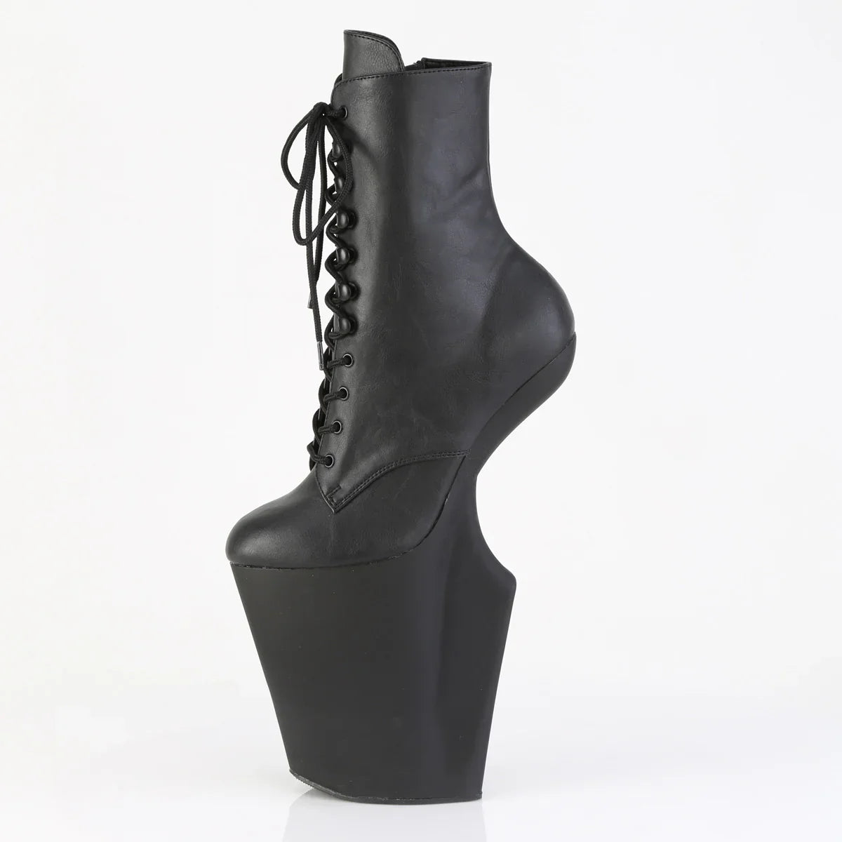 For when you want to stand out with a polished and powerful look. Height and style to make an effortless statement. Key details: platform, PU finish, rubber sole, black faux leather/matte black, vegan style. Approx. height: 25 cm heel + 12 cm platform. Guaranteed visual impact.