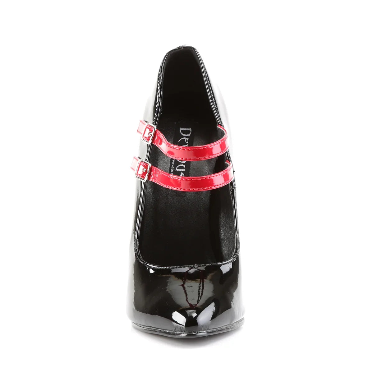 Estilo marcante e extremamente versátil. Design confortável e atraente, perfeito para eventos, sessões fotográficas e looks cheios de estilo do dia a dia. Detalhes principais: acabamento em verniz, sola em borracha, combinação de cores preto e vermelho em verniz, modelo vegan. Altura aproximada do salto: 15 cm. Garantia de sucesso.