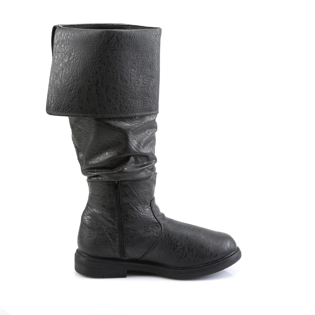 Design chamativo para eventos, sessões fotográficas e disfarces. Design marcante para representações de personagens com estilo. Detalhes principais: topo em PU, sola em borracha, PU preto com efeito desgastado, estilo vegan. Altura aproximada do salto: 2 cm. Ideal para um look temático.