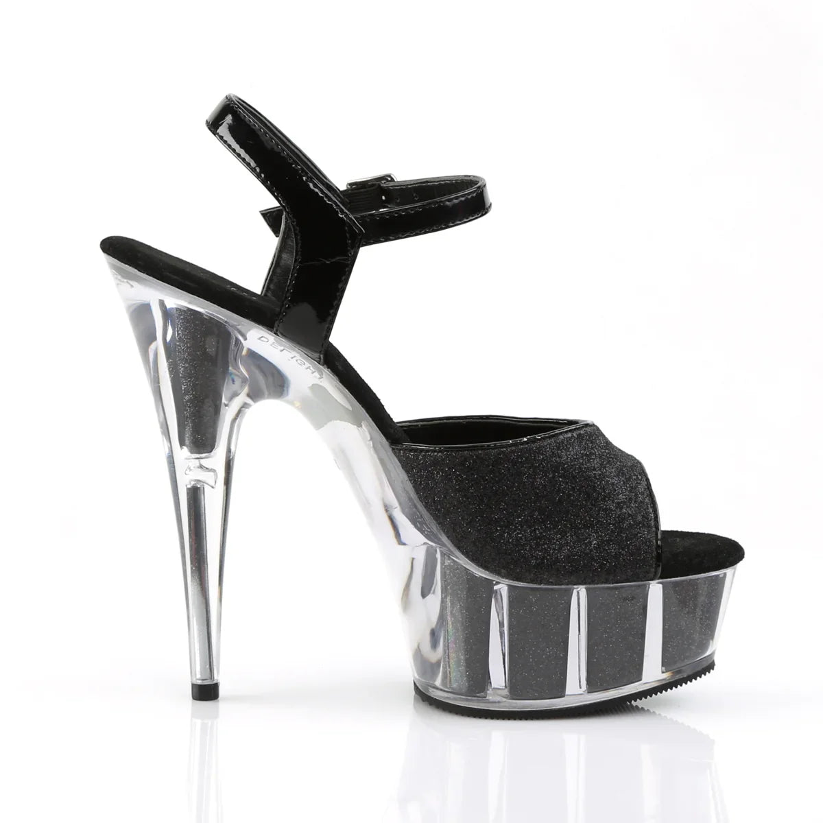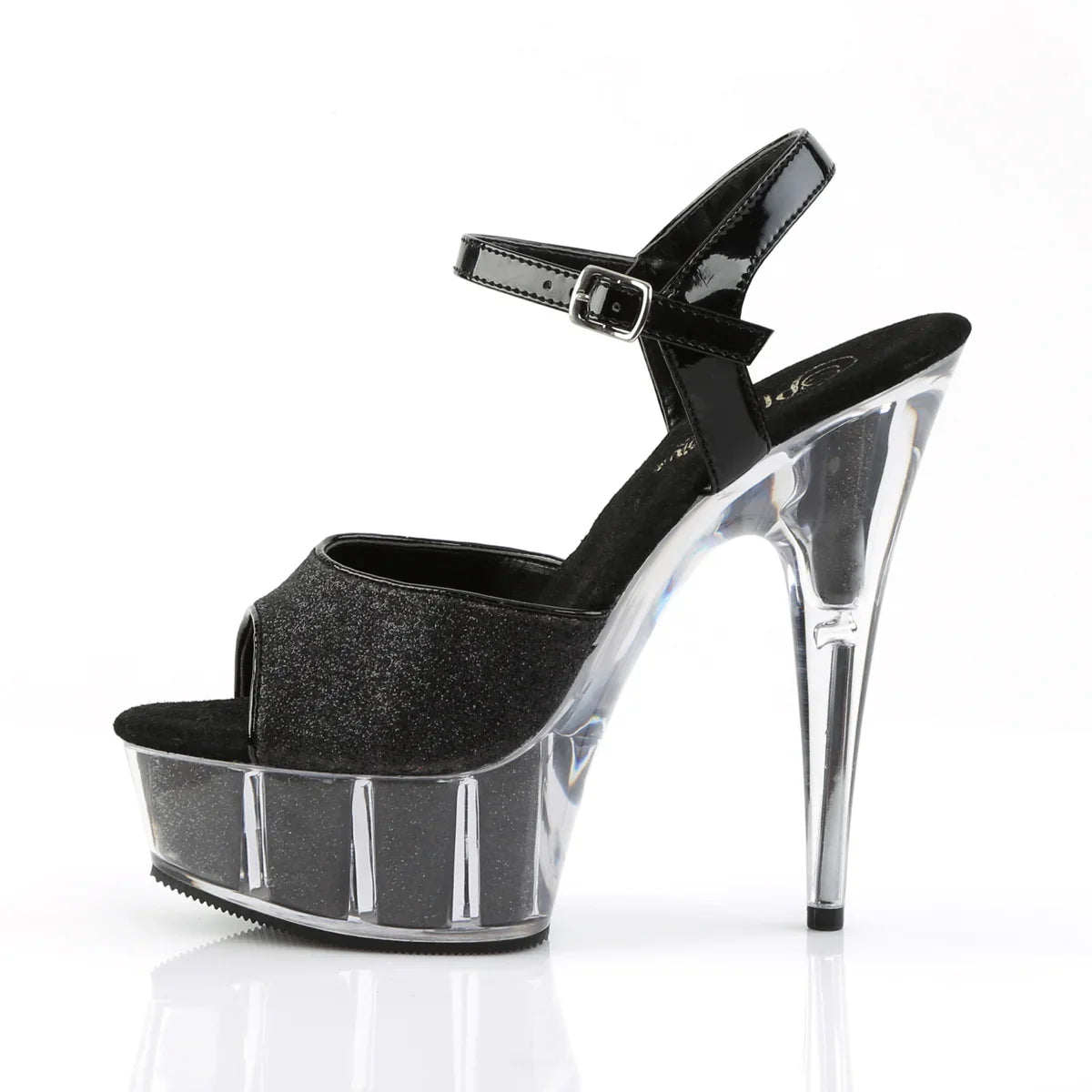 Leve, elegante e com um look que não passa despercebido. A plataforma ajuda a distribuir a inclinação do pé e melhora a estabilidade ao caminhar. Detalhes que fazem toda a diferença: acabamento com glitter, sola de borracha, cor preto com glitter. Altura total aproximada de 15 cm com a plataforma: máximo impacto visual sem sacrificar o controlo.