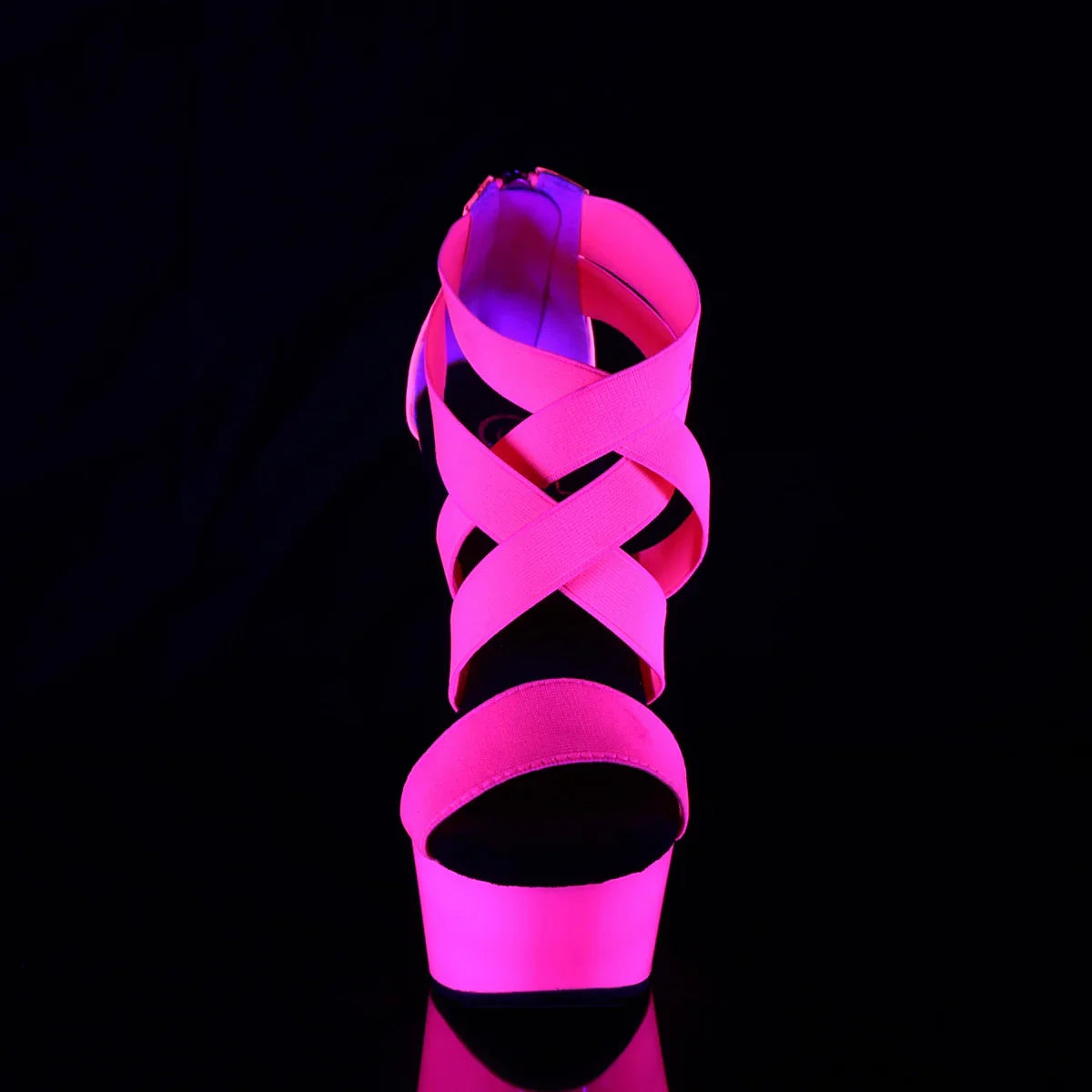 Leve, elegante e com um look que não passa despercebido. A plataforma ajuda a distribuir a inclinação do pé e melhora a estabilidade ao caminhar. Detalhes que fazem toda a diferença: acabamento elástico, sola em borracha, faixa elástica rosa néon - verniz/néon HP. Altura total aproximada de 15 cm com a plataforma: máximo impacto visual sem sacrificar o controlo.