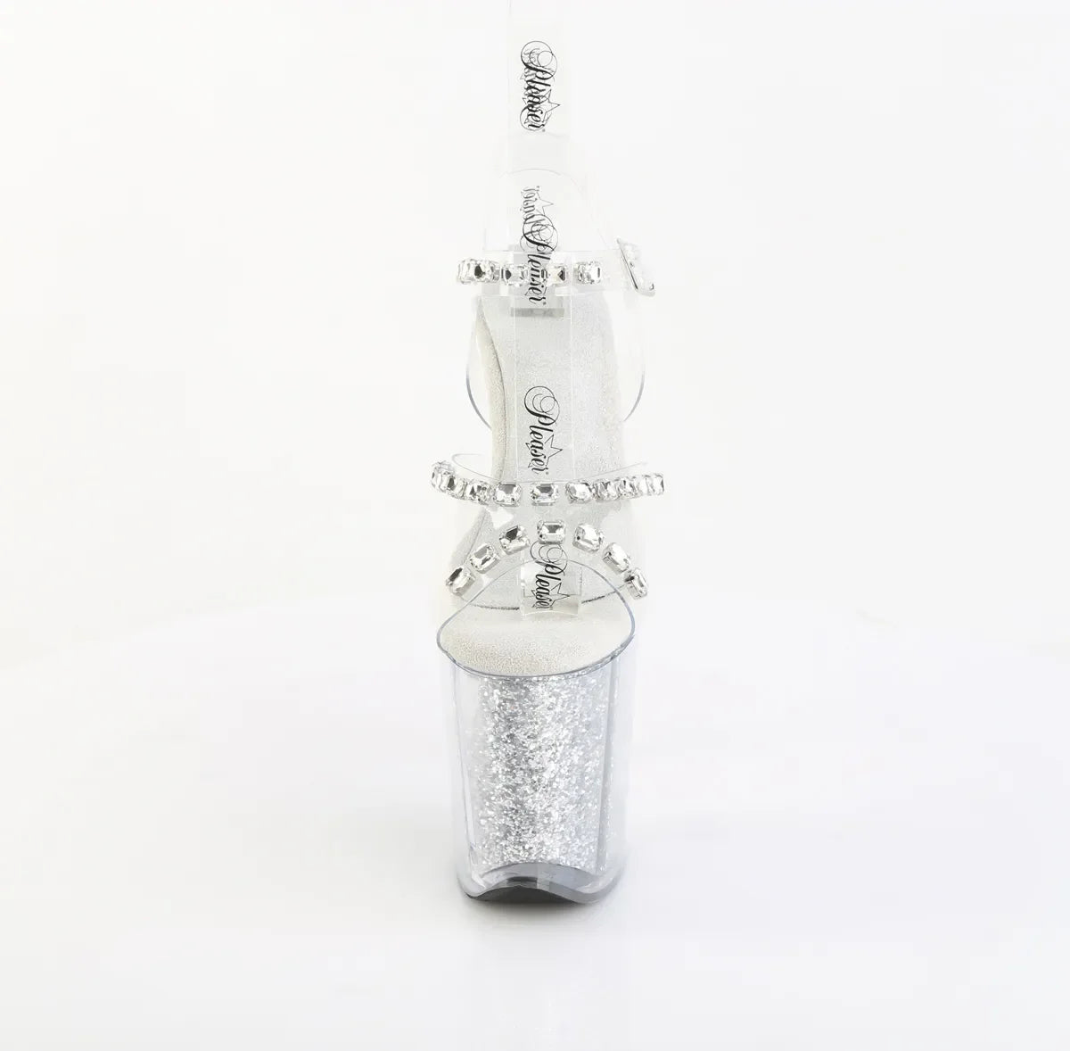 Sandália Pole Dance Pleaser FLAMINGO-808PREM-STNG (TPU transparente / Glitter prateado)